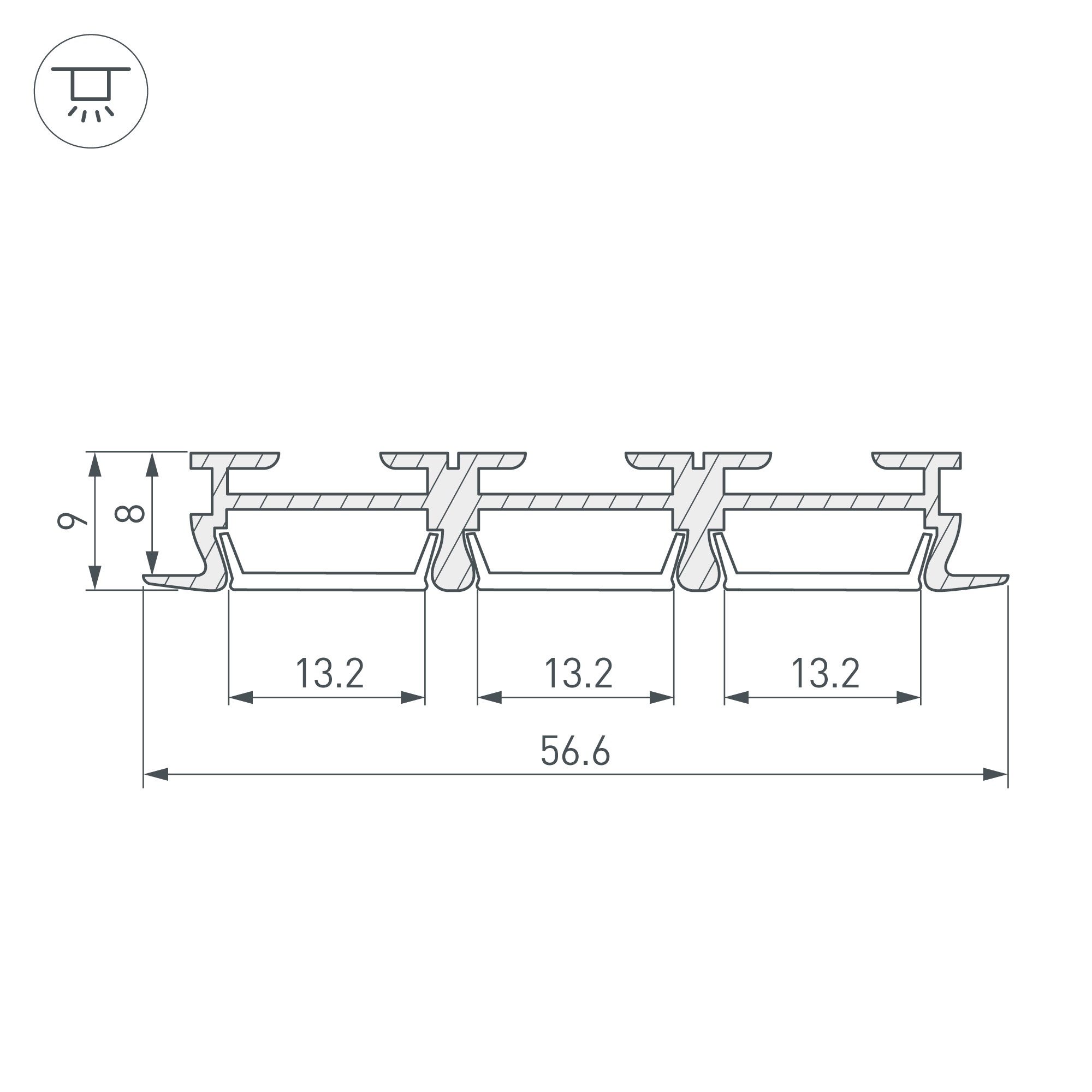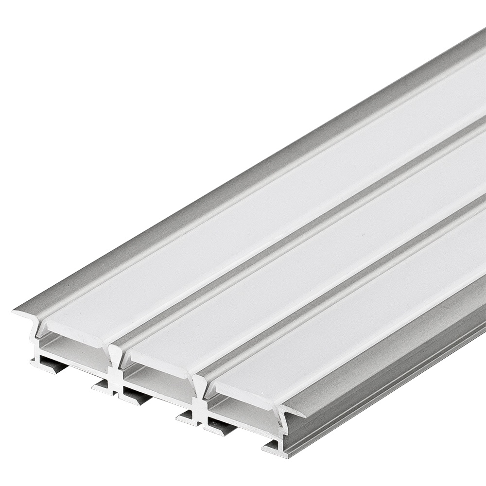 Алюминиевый анодированный тройной литой микропрофиль с фланцем (триада), без экрана, для 3-х светодиодных лент, линеек. Может использоваться с матовым или прозрачным экраном (рассеивателем). Размер 2000х56.6х9мм