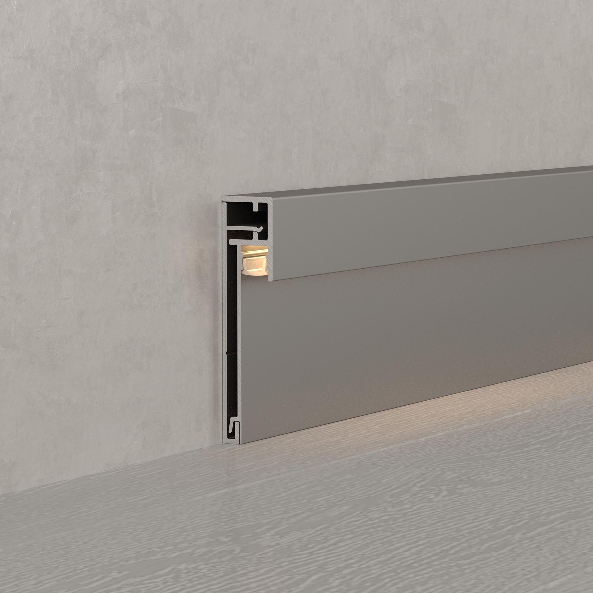 Накладной двухкомпонентный профиль-плинтус из анодированного алюминия для контурной подсветки помещения. Габаритные размеры профиля составляют 2000 мм в длину, 12,3 мм в ширину и 52,6 мм в высоту. Площадка для установки светодиодных лент позволяет использовать ленту шириной до 5 мм и мощностью до 20 Вт/м. Это обеспечивает гибкость в выборе светодиодных лент и создает потрясающие световые решения. Экран, заглушки и другие аксессуары не включены в комплект и приобретаются отдельно. Цена указана за 1 метр профиля. Простая установка без предварительной подготовки стен. Отличное решение для создания современных световых проектов.