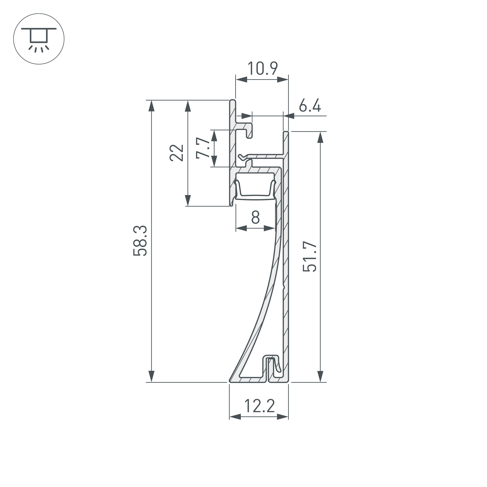 Встраиваемый двухкомпонентный профиль-плинтус из анодированного алюминия с накладным фланцем для создания эффекта парящей стены. Габаритные размеры профиля составляют 2000 мм в длину, 12,2 мм в ширину и 58,3 мм в высоту. Площадка для установки светодиодных лент позволяет использовать ленту шириной до 8 мм и мощностью до 20 Вт/м. Это обеспечивает гибкость в выборе светодиодных лент и создает потрясающие световые решения. Экран, заглушки и другие аксессуары не включены в комплект и приобретаются отдельно. Цена указана за 1 метр профиля. Отличное решение для создания современных световых проектов.