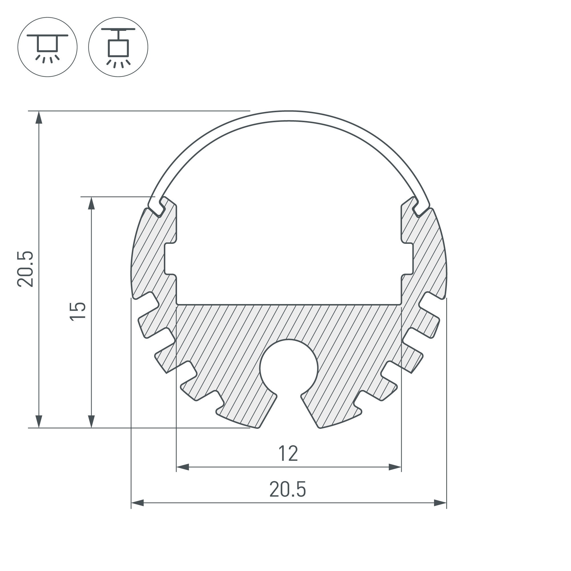 Характеристики - Профиль ROUND-D20-2000 ANOD (Arlight, Алюминий)