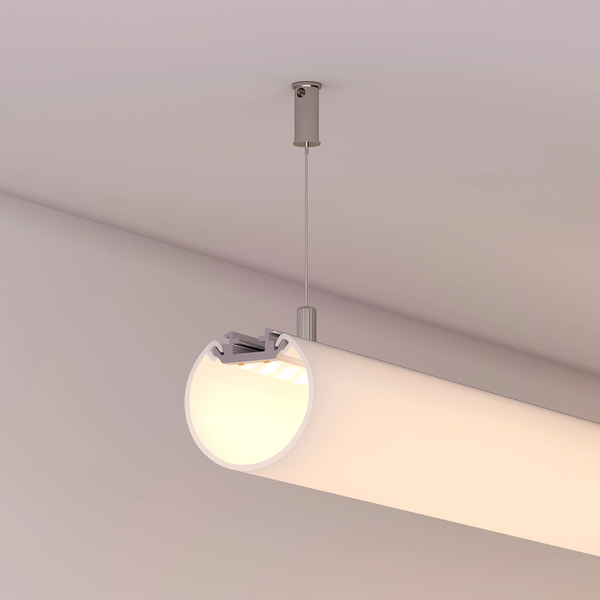 Подвесной/накладной профиль из анодированного алюминия для основного освещения. Габаритные размеры профиля с круглым рассеивателем составляют 2000 мм в длину, 40 мм в ширину и 40 мм в высоту. Площадка для установки светодиодных лент позволяет использовать ленту шириной до 16,7 мм и мощностью до 17 Вт/м. Это обеспечивает гибкость в выборе светодиодных лент и создает потрясающие световые решения. Экран, заглушки и другие аксессуары не включены в комплект и приобретаются отдельно. Цена указана за 1 метр профиля. Отличное решение для создания современных световых проектов.