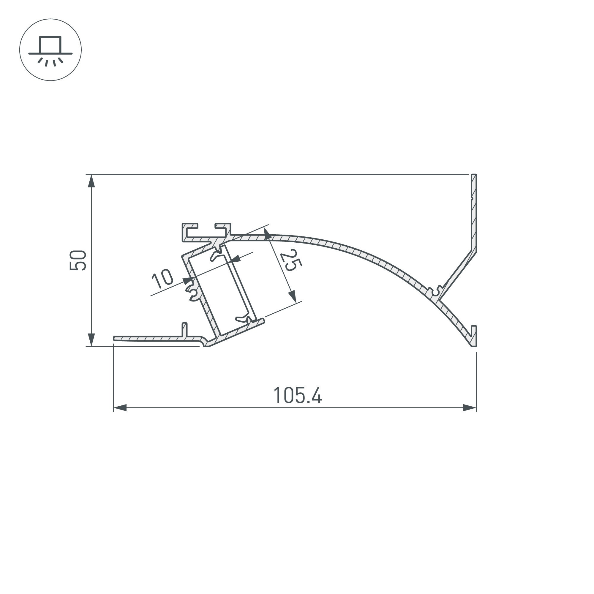 Характеристики - Профиль с экраном ALM-ARC-SIDE-2000 ANOD+FROST (Arlight, Алюминий)