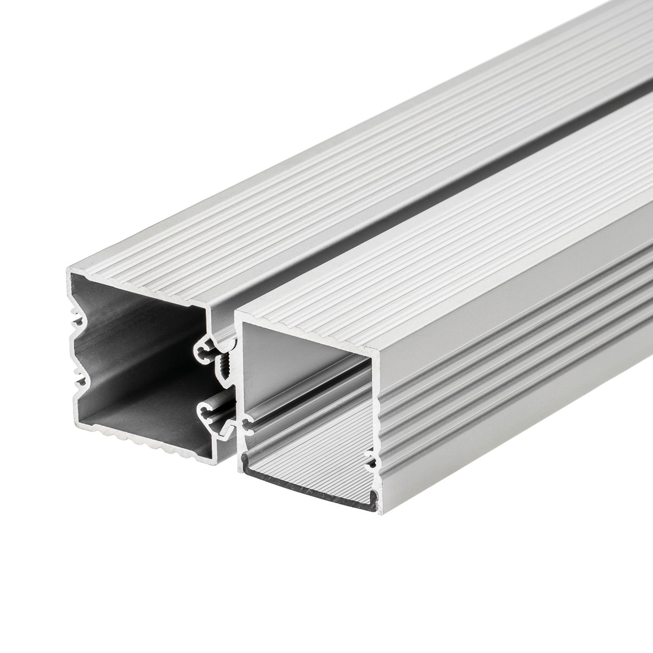 Анодированный профиль ALU-BASE длиной 2 м, в комплекте с прозрачным экраном. Устанавливается на основание ALU-BASE Small/Hiding (отдельно), крепится сверху саморезами ST2.2x9.5. Для настенных светильников.