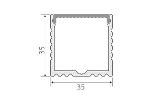 Алюминиевый профиль длина 2м в комплекте с матовым экраном. Материал экрана - PC, UV-защитный, ударопрочный. Подходят только PVC заглушки. Размер 35x35x2000мм.