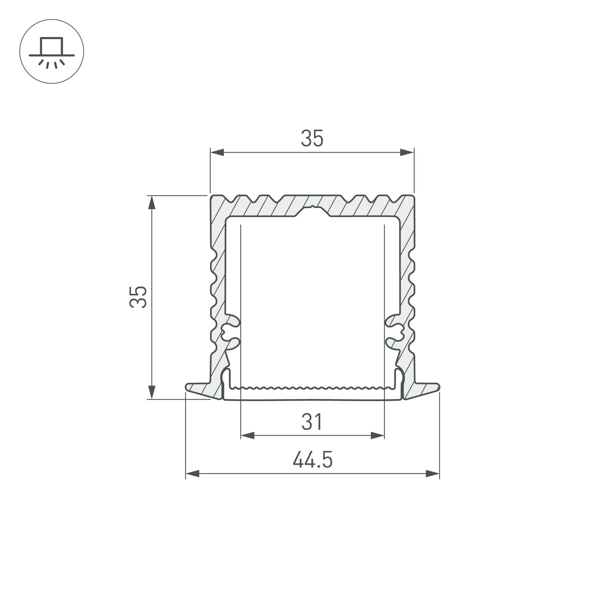 Характеристики - Профиль с экраном ALU-POWER-W35-2000-F ANOD+FROST (Arlight, Алюминий)