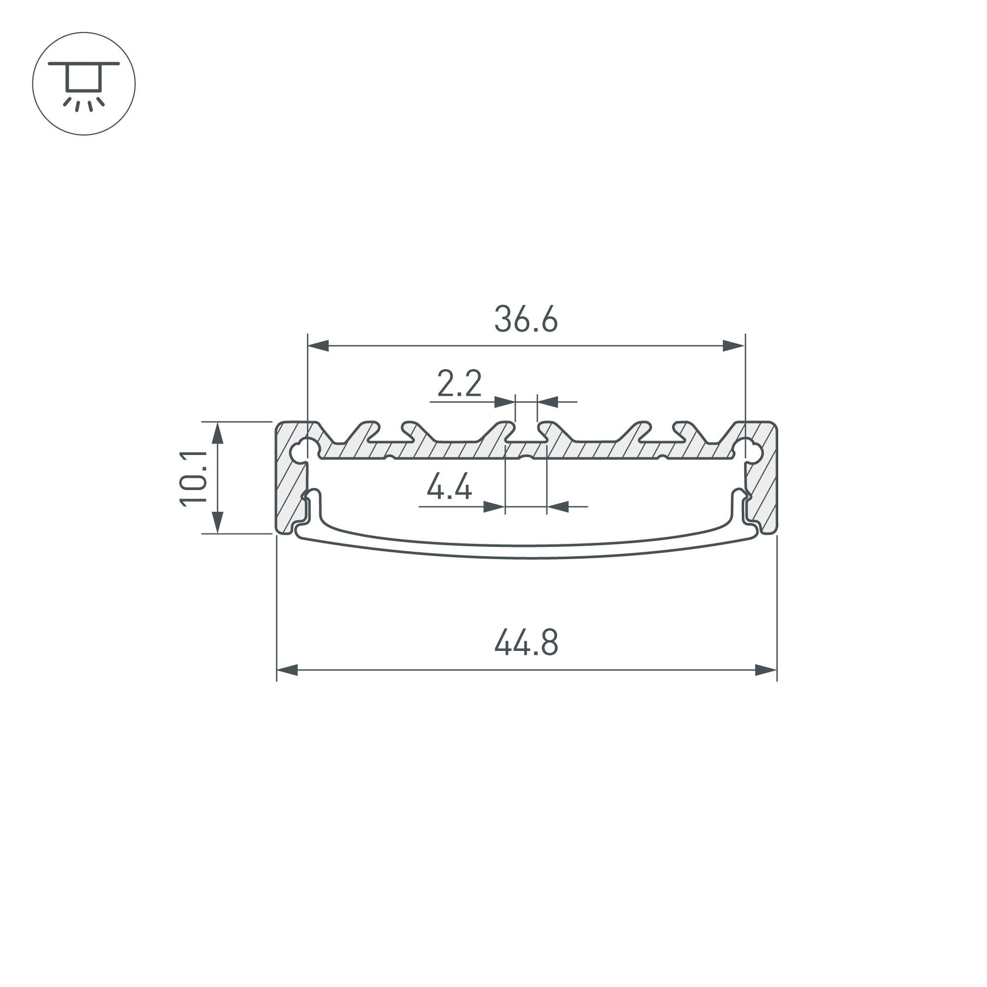 Накладной профиль из анодированного алюминия в комплекте с матовым рассеивателем из поликарбоната со светопропусканием 40% идеально подходит для контурной подсветки. Габаритные размеры профиля составляют 2000 мм в длину, 44,8 мм в ширину и 10,1 мм в высоту. Площадка для установки светодиодных лент позволяет использовать ленту шириной до 36,6 мм и мощностью до 29,3 Вт/м. Это обеспечивает гибкость в выборе светодиодных лент и создает потрясающие световые решения. Заглушки и другие аксессуары не включены в комплект и приобретаются отдельно. Цена указана за комплект. Отличное решение для создания современных световых проектов.