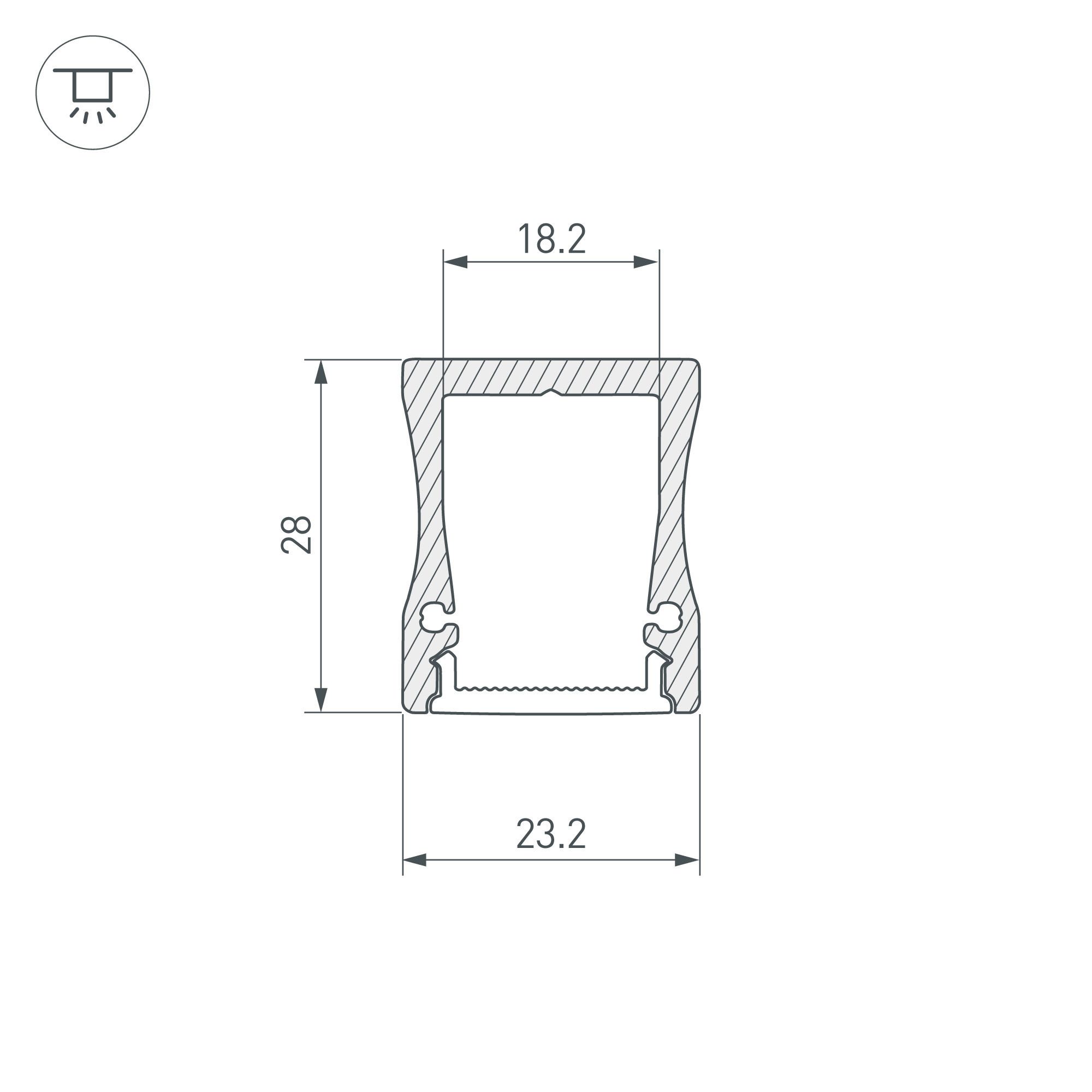 Характеристики - Профиль с экраном ALU-WIDE-H28-2000 ANOD+FROST (Arlight, Алюминий)