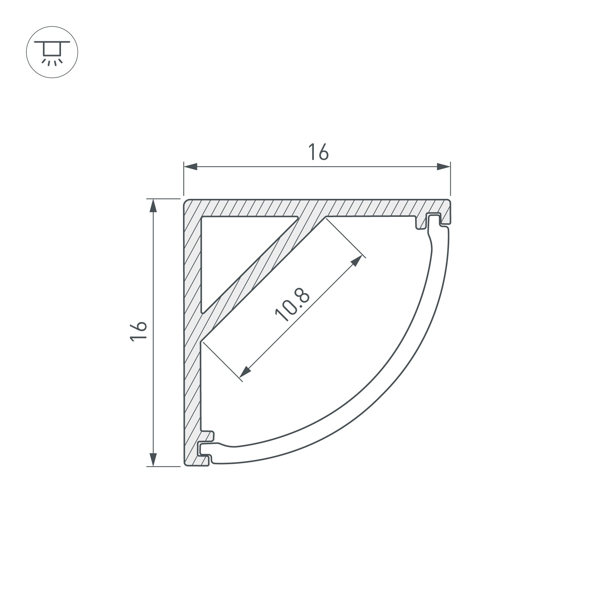 Алюминиевый анодированный угловой профиль для светодиодных лент и линеек. Габаритные размеры (L×W×H): 2000x16x16 мм. Ширина площадки для ленты 10 мм.