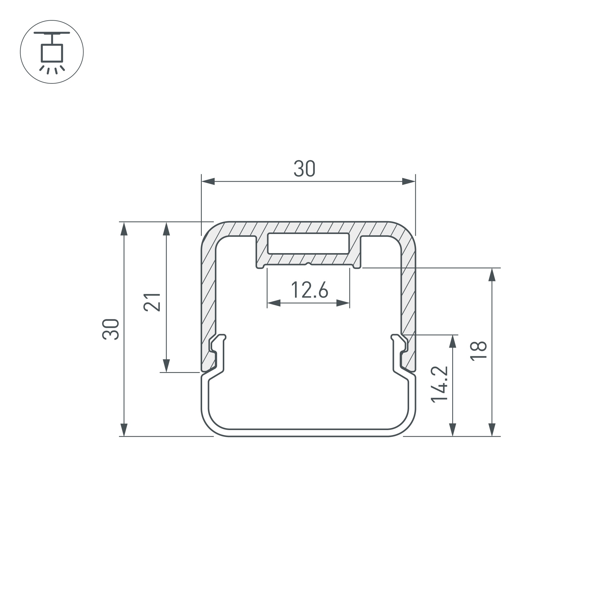 Характеристики - Профиль с экраном LINE-D-3030-2000 SQUARE BLACK+OPAL (Arlight, Алюминий)