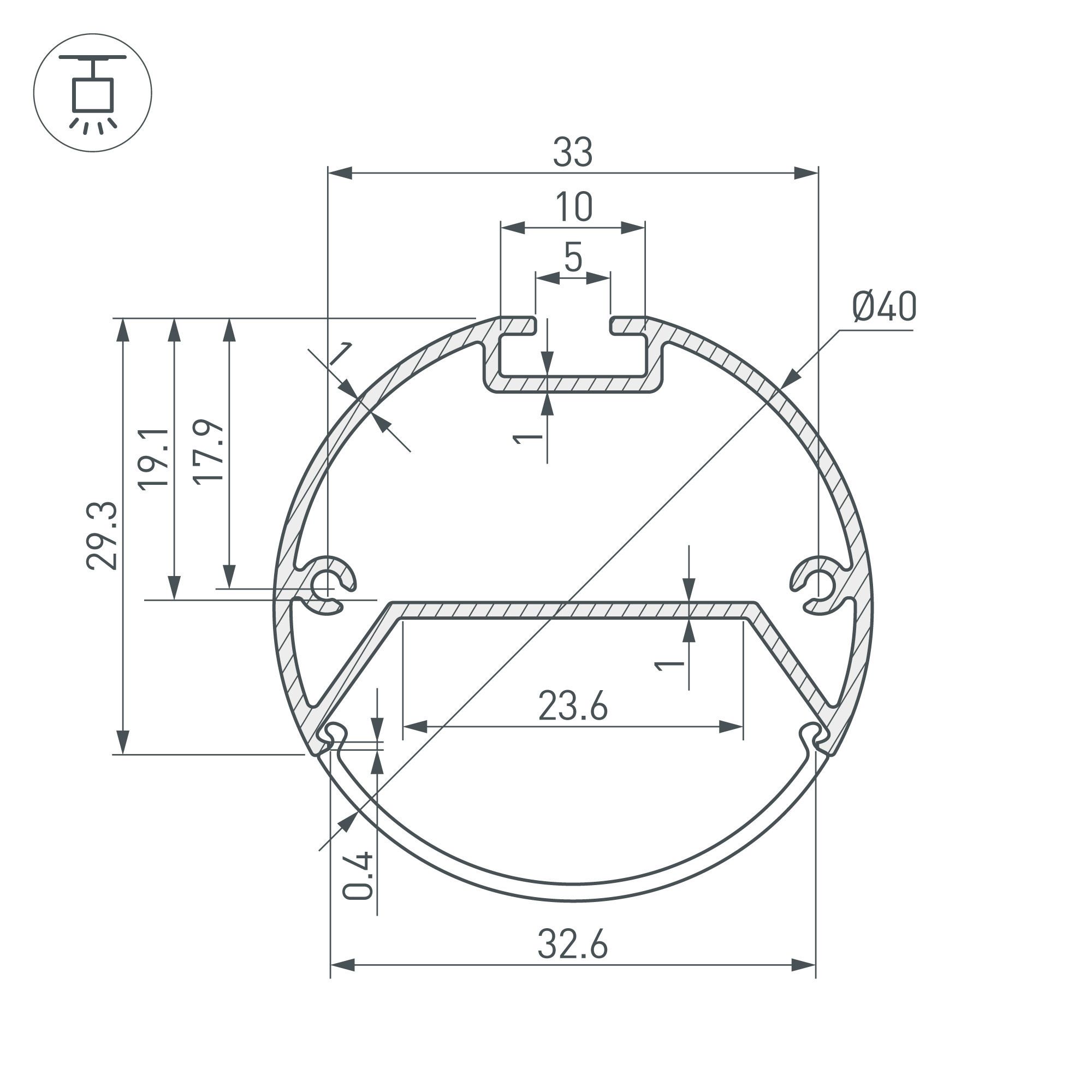 Характеристики - Профиль с экраном SL-ROUND-D40-2500 ANOD+OPAL (Arlight, Алюминий)