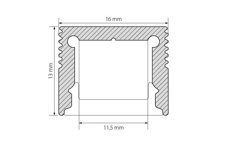 Профиль 16х13 мм в комплекте с матовым экраном. Анодированный алюминий. Длина 2500мм. Цена за комплект 2,5м. Заглушки и держатели поставляются отдельно. Заменяется на арт.025869
