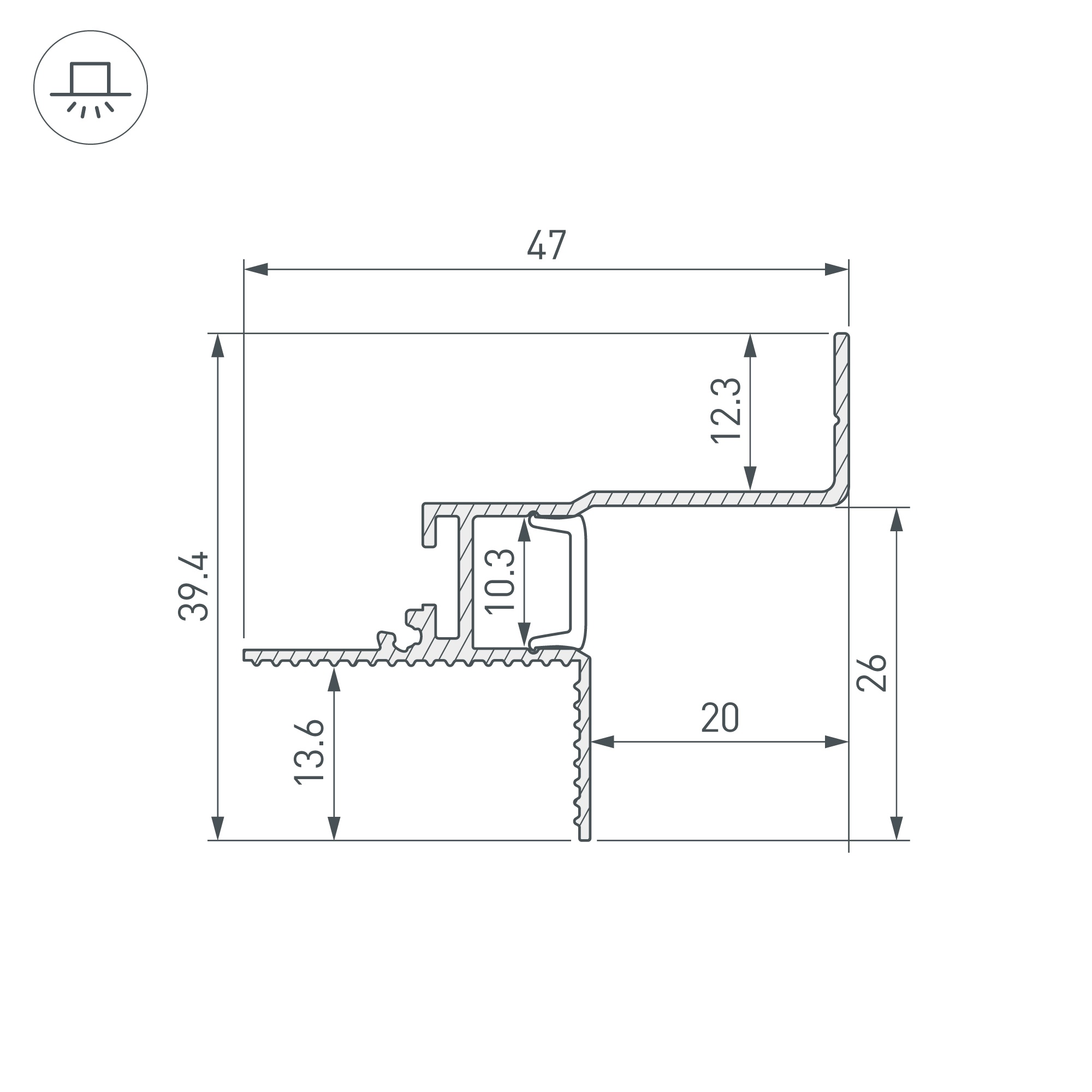 Профиль для создания эффекта парящего потолка с мягким свечением по периметру помещения. Зазор между потолком и стеной 20 мм заполняется свечением от ленты и создает комфортную расслабляющую атмосферу. Стильное решение для современного минималистичного интерьера. Встраиваемый алюминиевый профиль белого цвета со скрытым фланцем устанавливается в потолки и потолочные ниши из гипсокартона толщиной 12,5 мм. Габаритные размеры профиля составляют 3000 мм в длину, 47 мм в ширину и 39,4 мм в высоту. Площадка для установки светодиодных лент позволяет использовать ленту шириной до 10,3 мм. Это обеспечивает гибкость в выборе светодиодных лент и создает потрясающие световые решения. Экраны, заглушки и другие аксессуары не включены в комплект и приобретаются отдельно. Цена указана за 1 метр профиля.