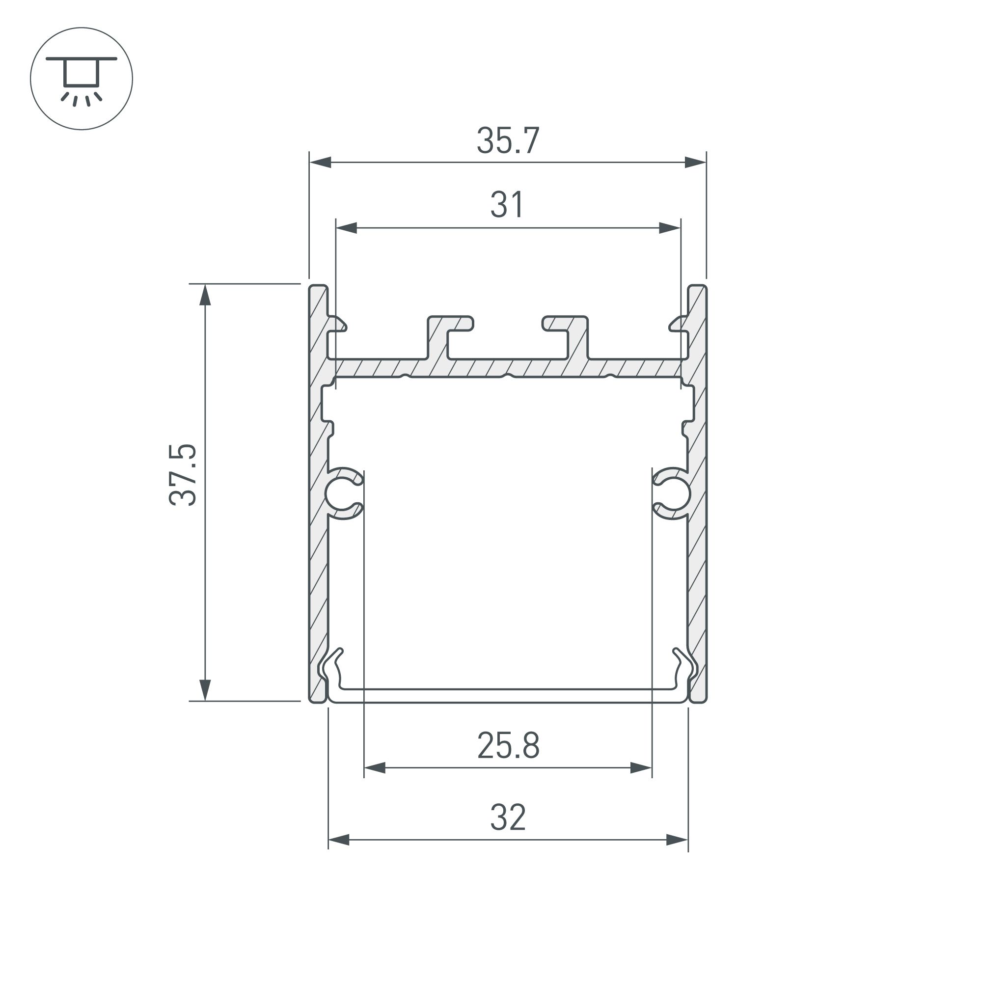 Характеристики - Профиль SL-LINE-3638-LW-2000 ANOD (Arlight, Алюминий)