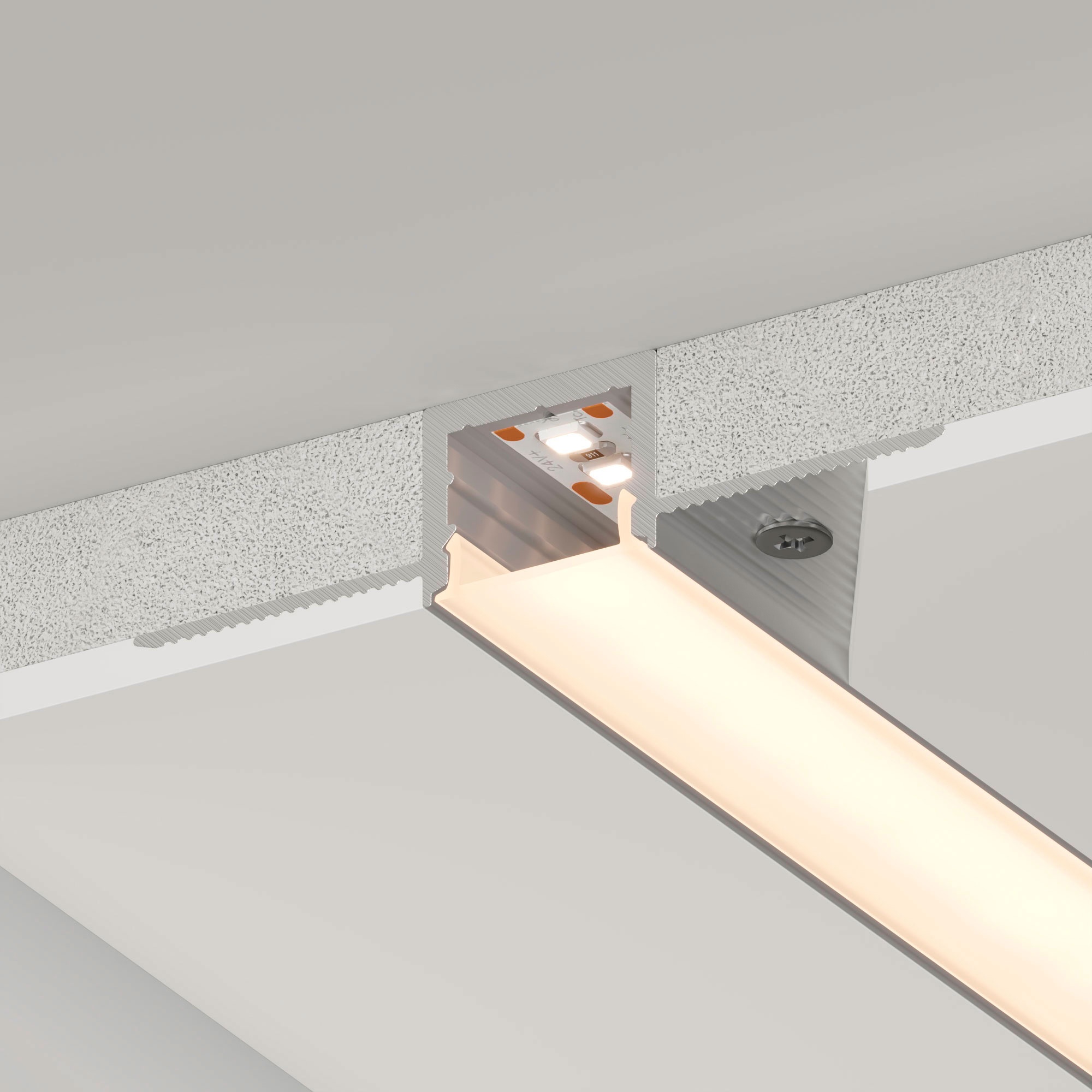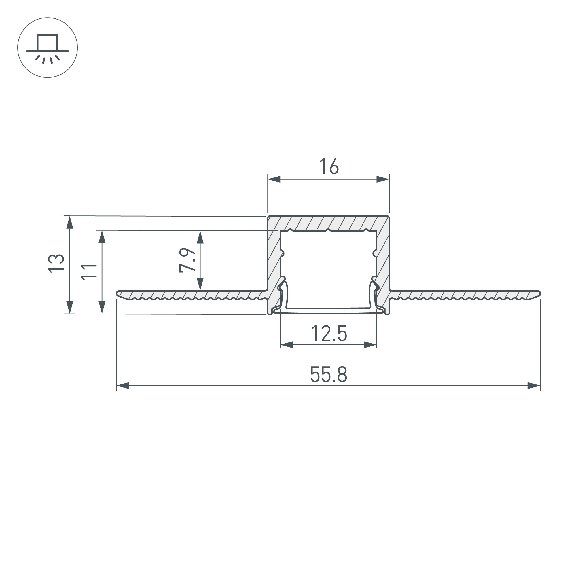 Встраиваемый профиль со скрытым фланцем из анодированного алюминия под строительную отделку для контурной подсветки интерьера. Габаритные размеры профиля составляют 2000 мм в длину, 55,8 мм в ширину и 13 мм в высоту. Площадка для установки светодиодных лент позволяет использовать ленту шириной до 12 мм и мощностью до 25,7 Вт/м. Это обеспечивает гибкость в выборе светодиодных лент и создает потрясающие световые решения. Экран, заглушки и другие аксессуары не включены в комплект и приобретаются отдельно. Цена указана за 1 метр профиля. Отличное решение для создания современных световых проектов.