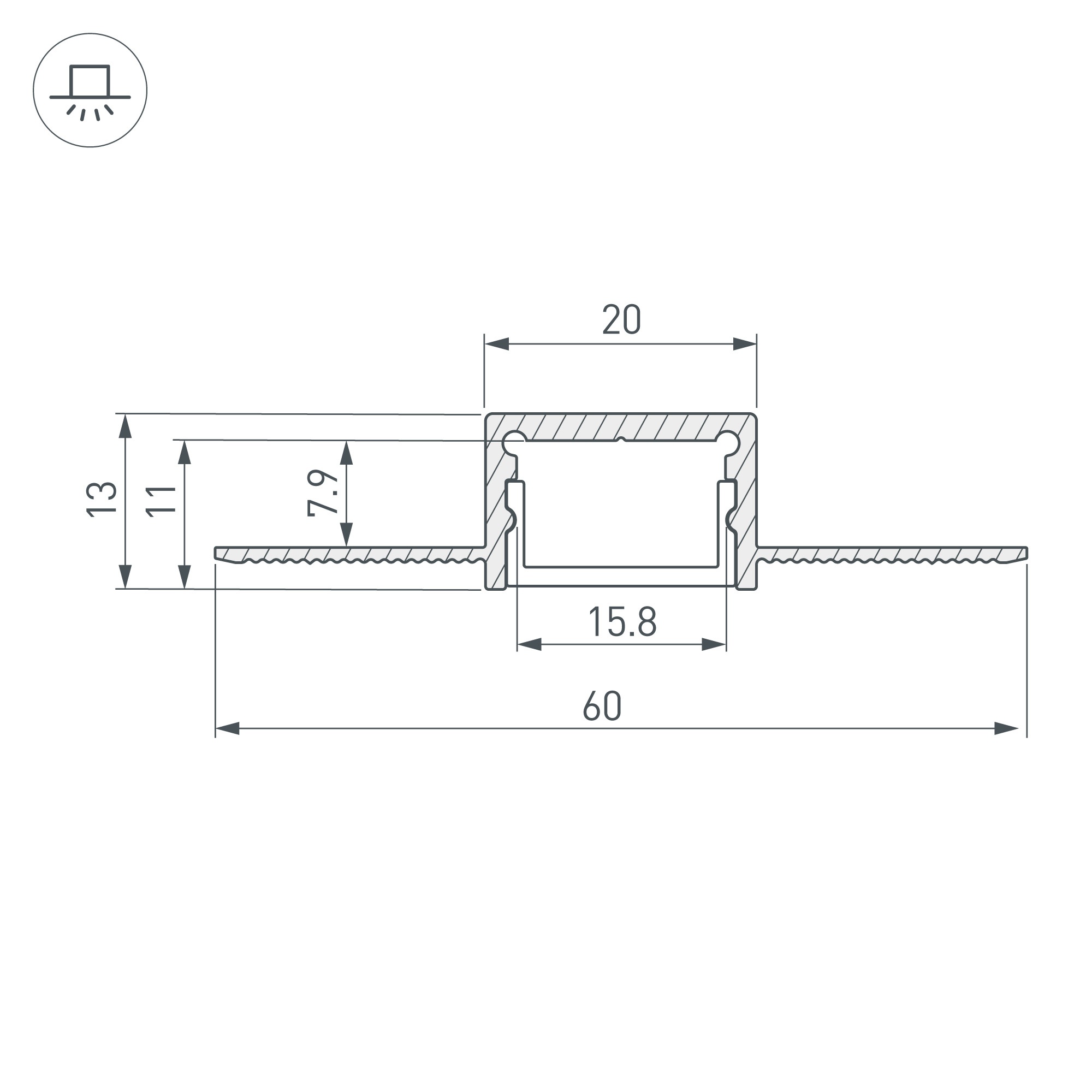 Встраиваемый профиль со скрытым фланцем из анодированного алюминия под строительную отделку для контурной подсветки интерьера. Габаритные размеры профиля составляют 2000 мм в длину, 60 мм в ширину и 13 мм в высоту. Площадка для установки светодиодных лент позволяет использовать ленту шириной до 15 мм и мощностью до 27,7 Вт/м. Это обеспечивает гибкость в выборе светодиодных лент и создает потрясающие световые решения. Экран, заглушки и другие аксессуары не включены в комплект и приобретаются отдельно. Цена указана за 1 метр профиля. Отличное решение для создания современных световых проектов.