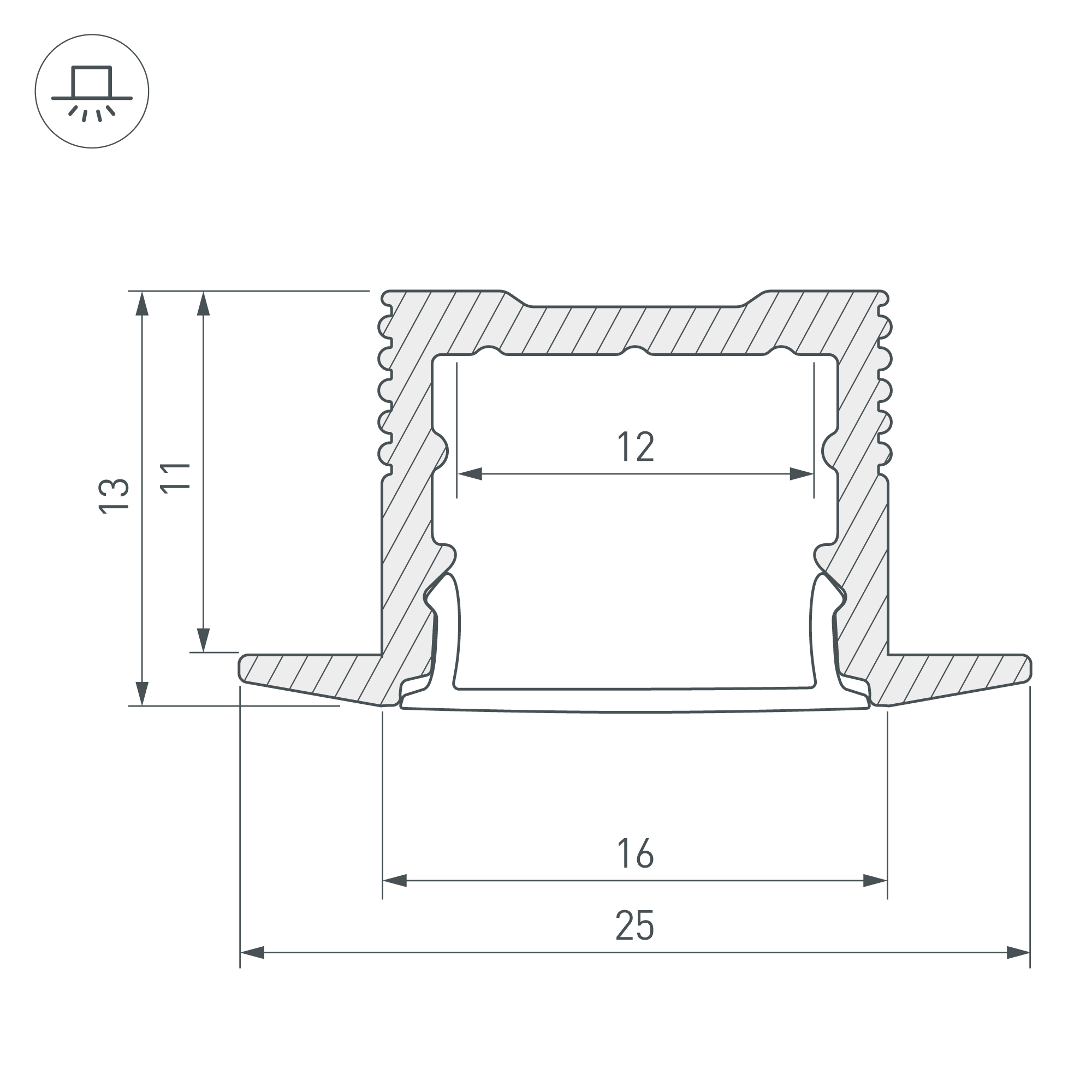 Встраиваемый профиль с накладным фланцем черного цвета из алюминия для контурной подсветки интерьера. Габаритные размеры профиля составляют 2000 мм в длину, 25 мм в ширину и 13 мм в высоту. Площадка для установки светодиодных лент позволяет использовать ленту шириной до 12 мм и мощностью до 15,2 Вт/м. Это обеспечивает гибкость в выборе светодиодных лент и создает потрясающие световые решения. Экран, заглушки и другие аксессуары не включены в комплект и приобретаются отдельно. Цена указана за 1 метр профиля. Отличное решение для создания современных световых проектов.