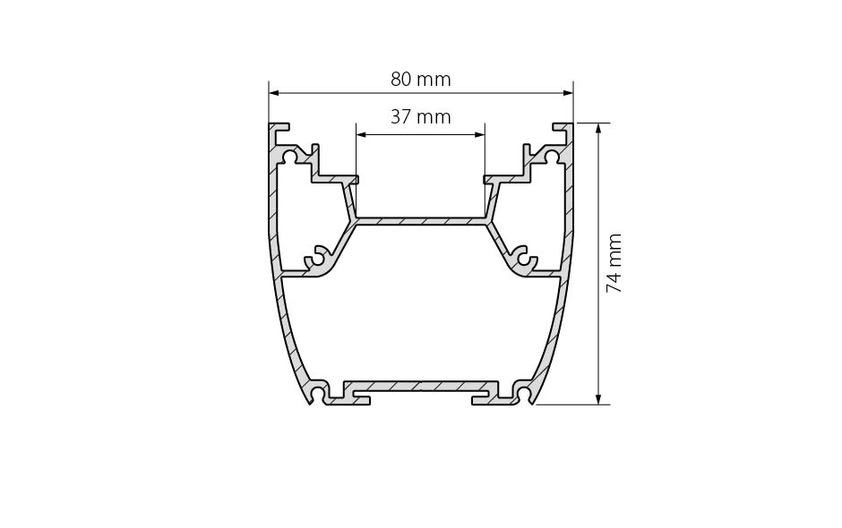 Новая модель! Стекло (экран) вставляется в паз. Алюминиевый анодированный корпус до 80Вт/м для изготовления прожекторов и светильников, с отсеком для блока питания,для лент и линеек шириной до 37мм. Заглушки и крепления (под DIN-рейку) поставляются отдельно. Размер 80х74х2000мм. Цена за 1м.