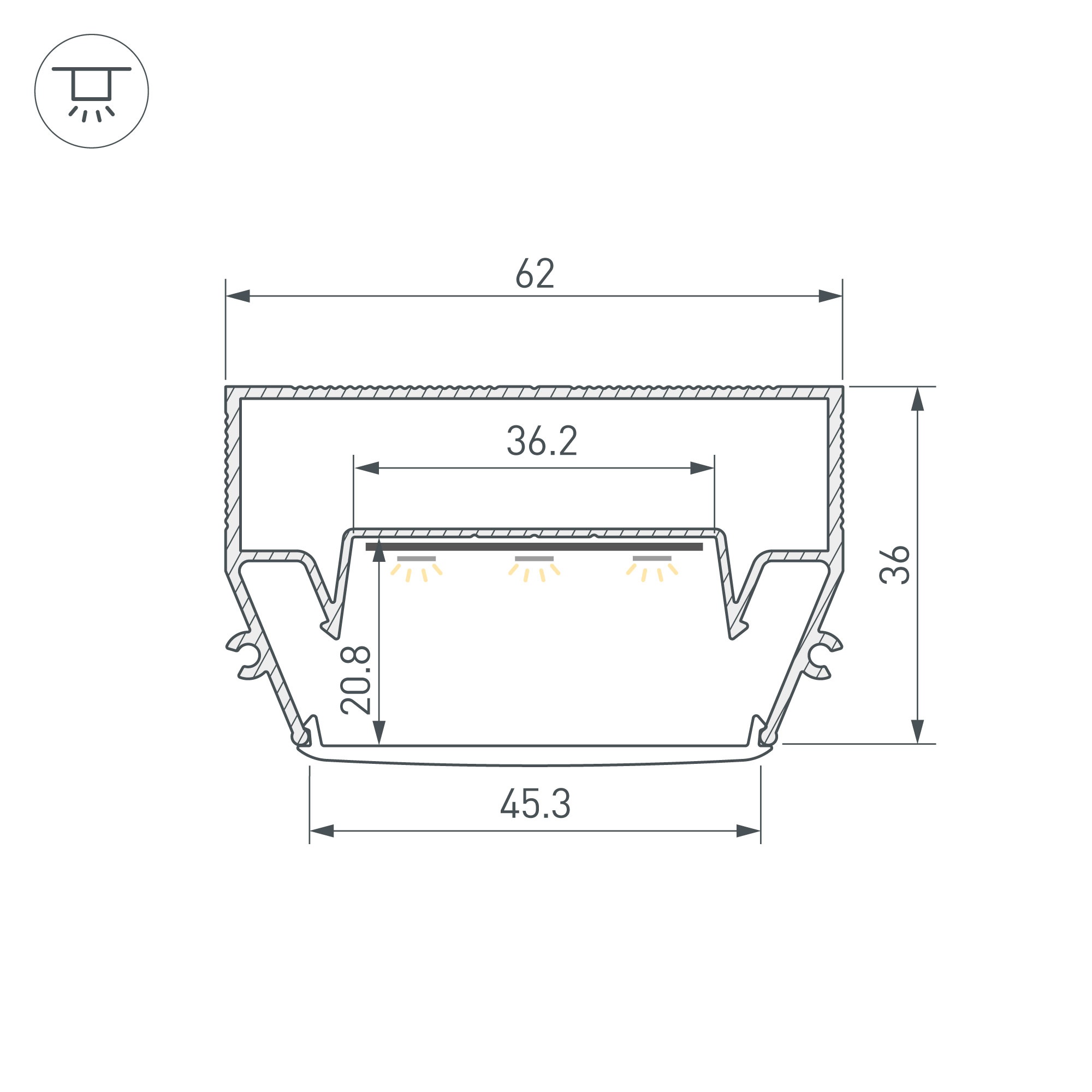 Характеристики - Профиль STRETCH-S-50-CEIL-CENTER-2000 (GAMMA50) (Arlight, Алюминий)