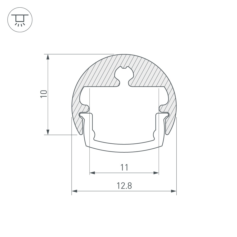 Алюминиевый анодированный круглый мини-профиль для создания поворотных и выносных светильников, замены ламп Т5. Габаритные размеры (L×W×H): 2000x12,8x10 мм. Ширина площадки для ленты 11 мм. Экраны, заглушки и другие аксессуары приобретаются отдельно. Цена за 1 метр.