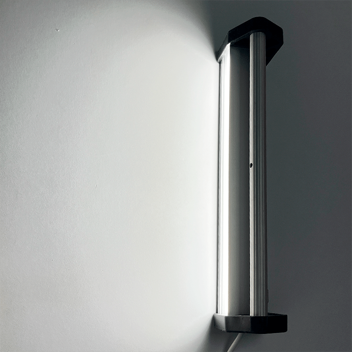Прочная малярная лампа общего освещения для локализованной проверки качества отделочных и покрасочных работ в строительстве и декорировании автомобилей. Герметичный корпус из анодированного авиационного сплава алюминия, стекло из ударопрочного поликарбоната и боковые силиконовые накладки защищают линзу и всю конструкцию от механических и химических повреждений.