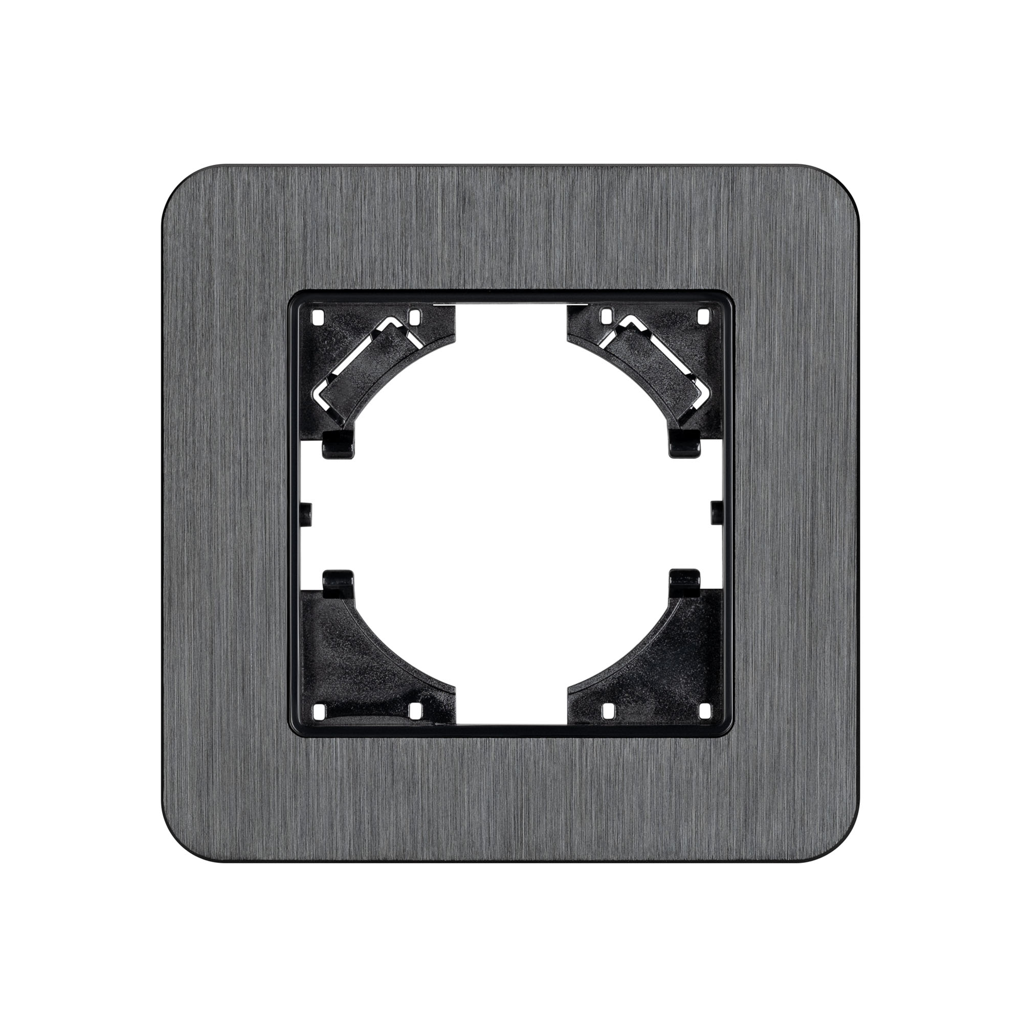 Рамка из серии AKIRY представляет собой комбинацию в виде основы из тугоплавкого пластика и 3-х миллиметровой накладки из алюминиевого сплава. Корпус выполнен в черном цвете и сатинированной поверхностью с высотой 7мм, что позволяет гармонично встроить в интерьер любого современного дизайн-проекта. Невидимая часть из тугоплавкого пластика, для надежной фиксации механизма. Грани алюминиевой накладки аккуратно обработаны и отшлифованы, чтобы обезопасить пользователя при установке и демонтаже. Рамка предназначена под встраиваемые механизмы.