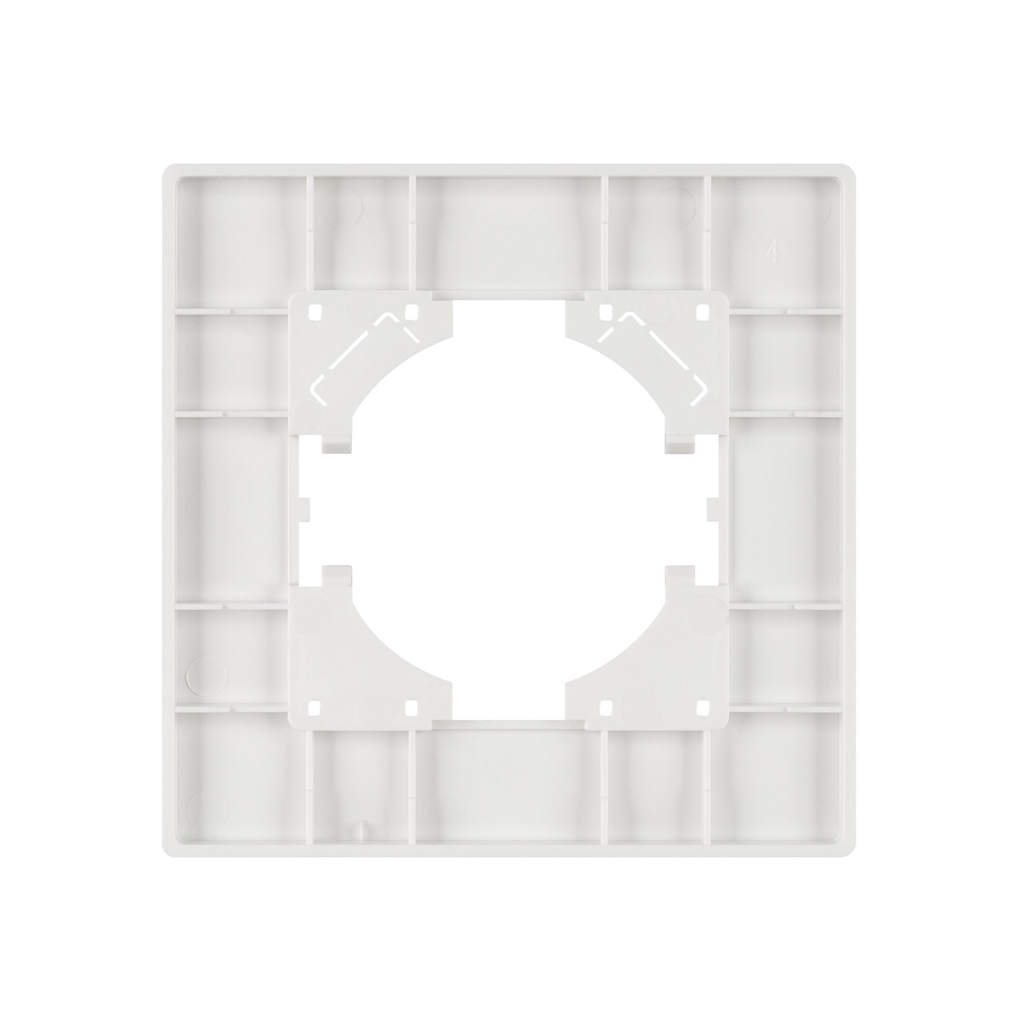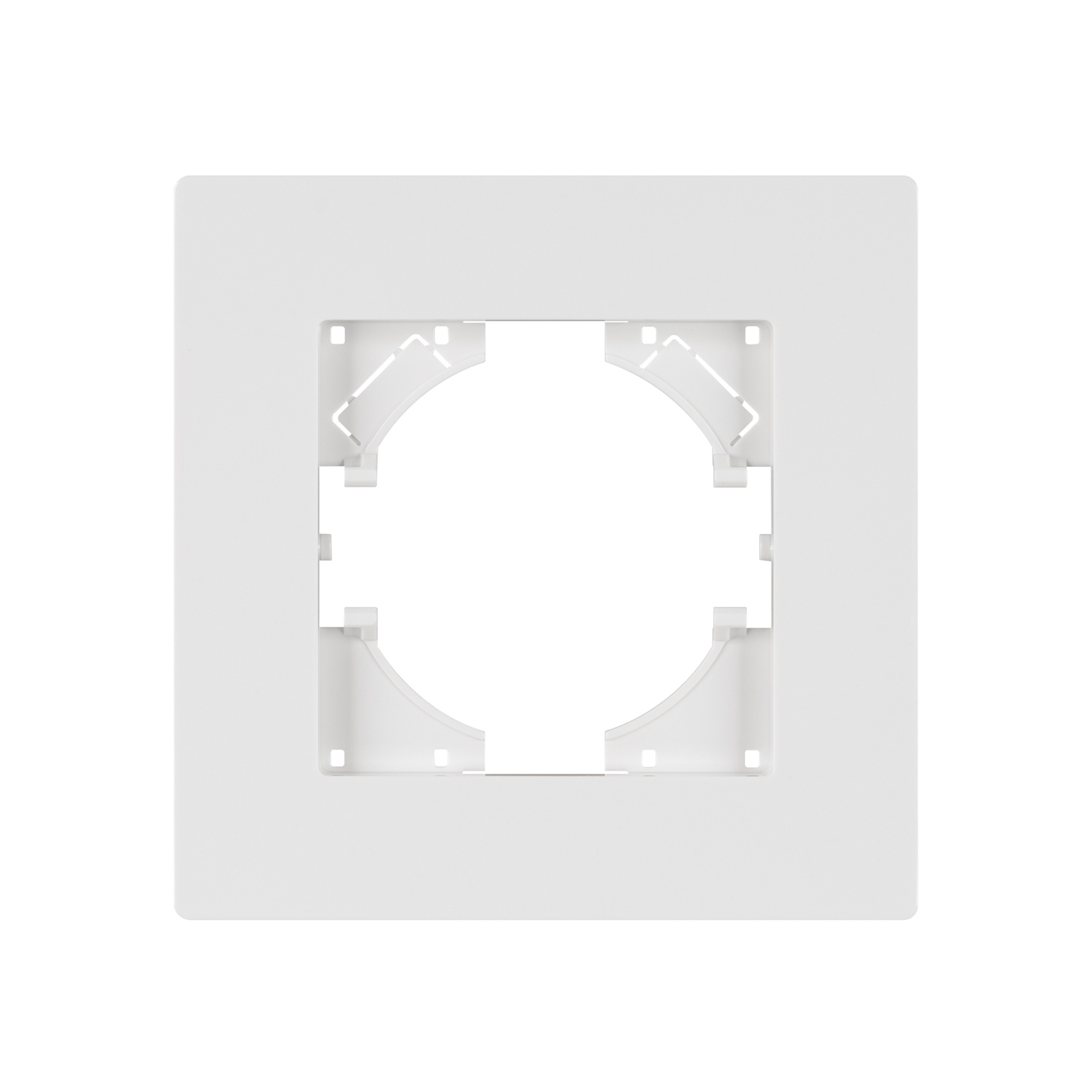 Рамка пластиковая на 1 пост, под встраиваемый механизм. Цвет - белый. Среднего уровня герметичности IP20. Ориентация монтажа - горизонтальная (основным ориентиром служат посадочные выступы для накладки механизма).