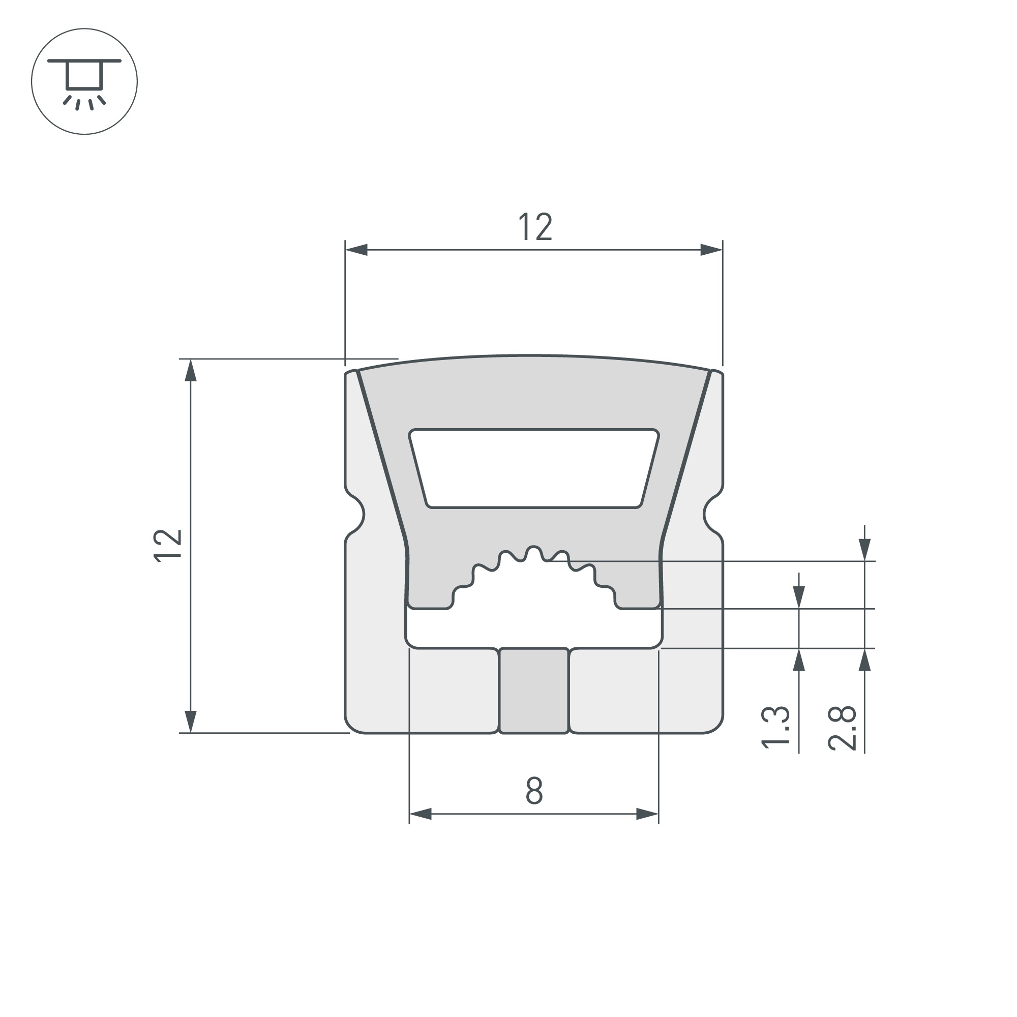 Характеристики - Силиконовый профиль WPH-FLEX-1212-TOP-S8-20m WHITE (Arlight, Силикон)