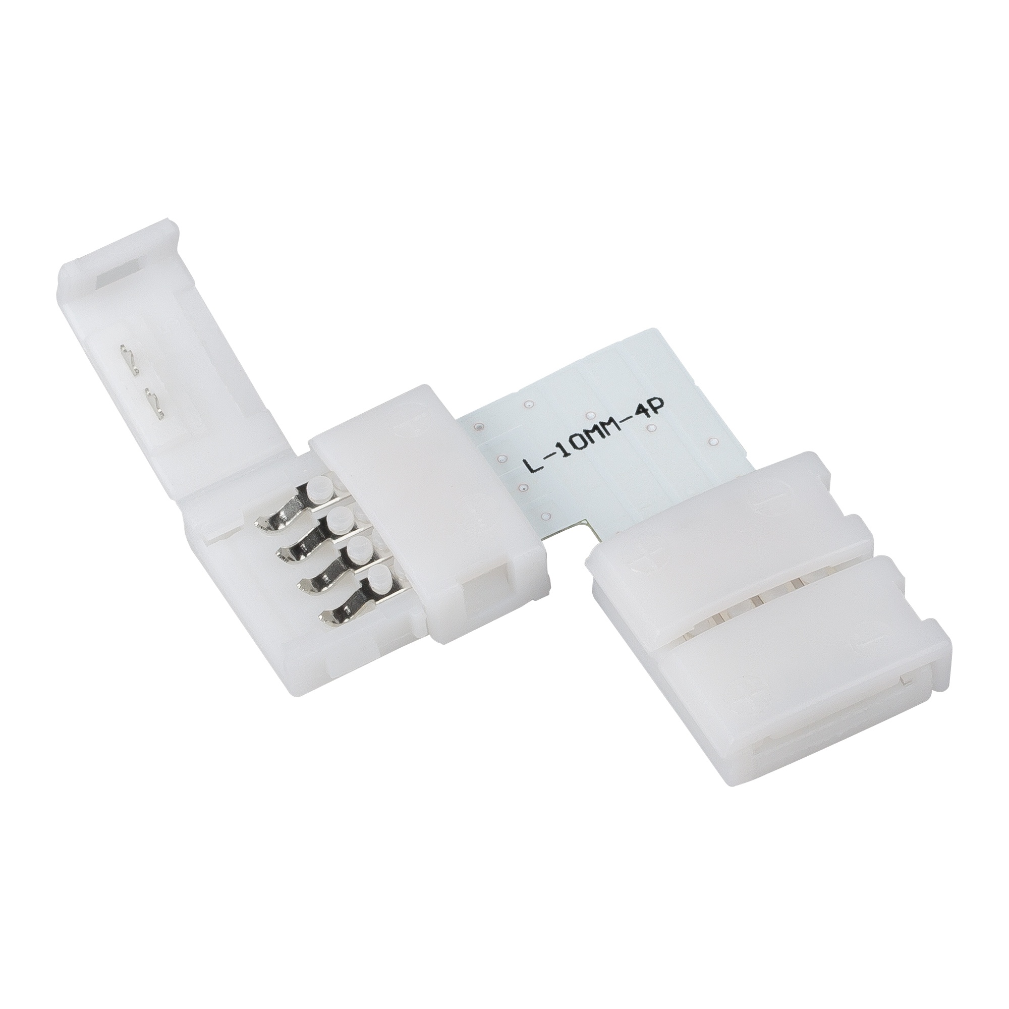 Угловой соединитель с разъемами на фиксаторах, для соединения RGB лент шириной 10мм. Максимальный допустимый ток 4А. Не рекомендуется соединять длинные отрезки лент! Заменен на обновленную модель.