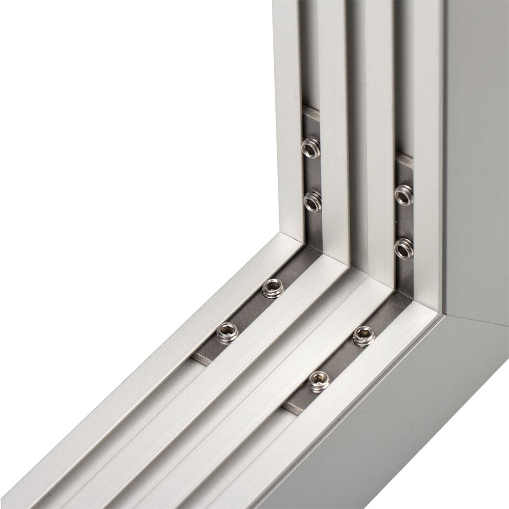 Угловой коннектор для соединения двух отрезков профилей KLUS из анодированного алюминия под углом 135° в разных плоскостях. Устанавливается в паз, фиксируется идущими в комплекте винтами. Применяется при изготовлении светильников длиной, превышающей длину профиля.