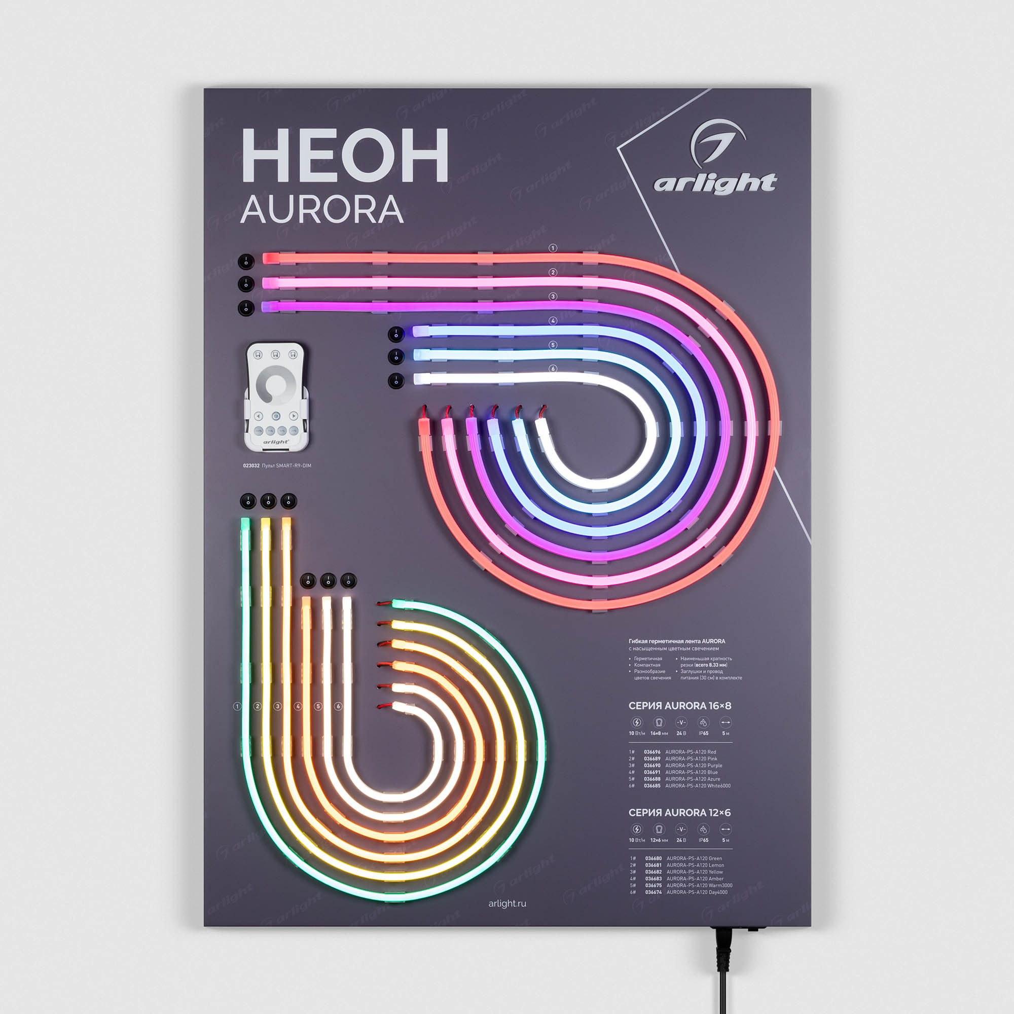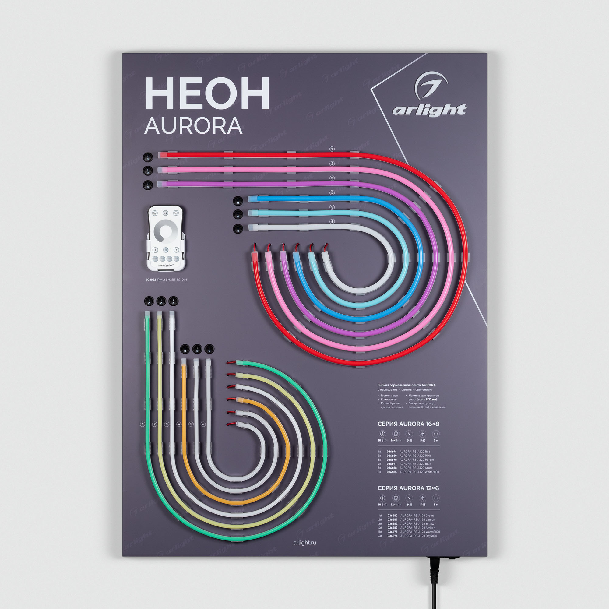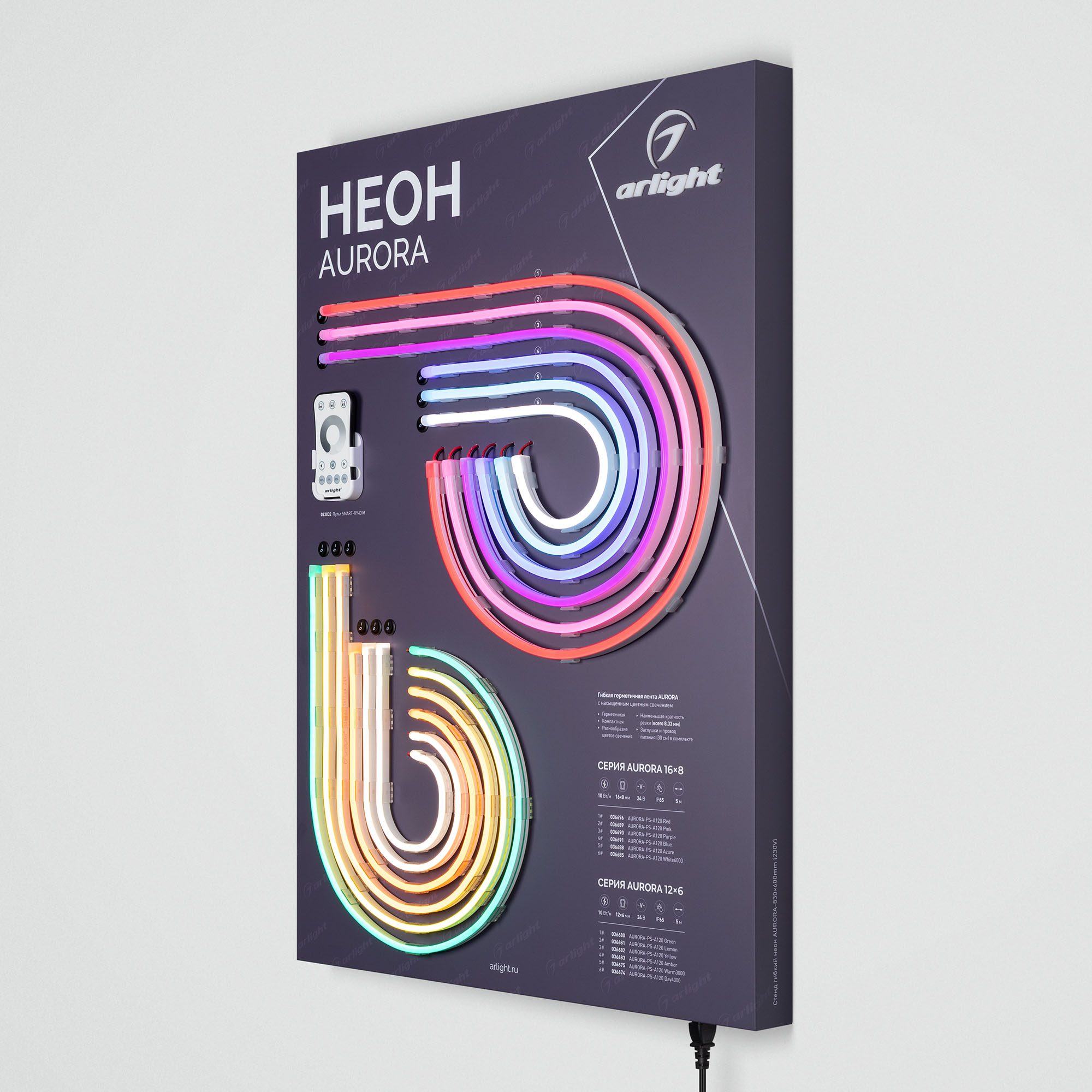 Характеристики - Стенд Гибкий Неон AURORA-830x600mm (230V) (Arlight, -)