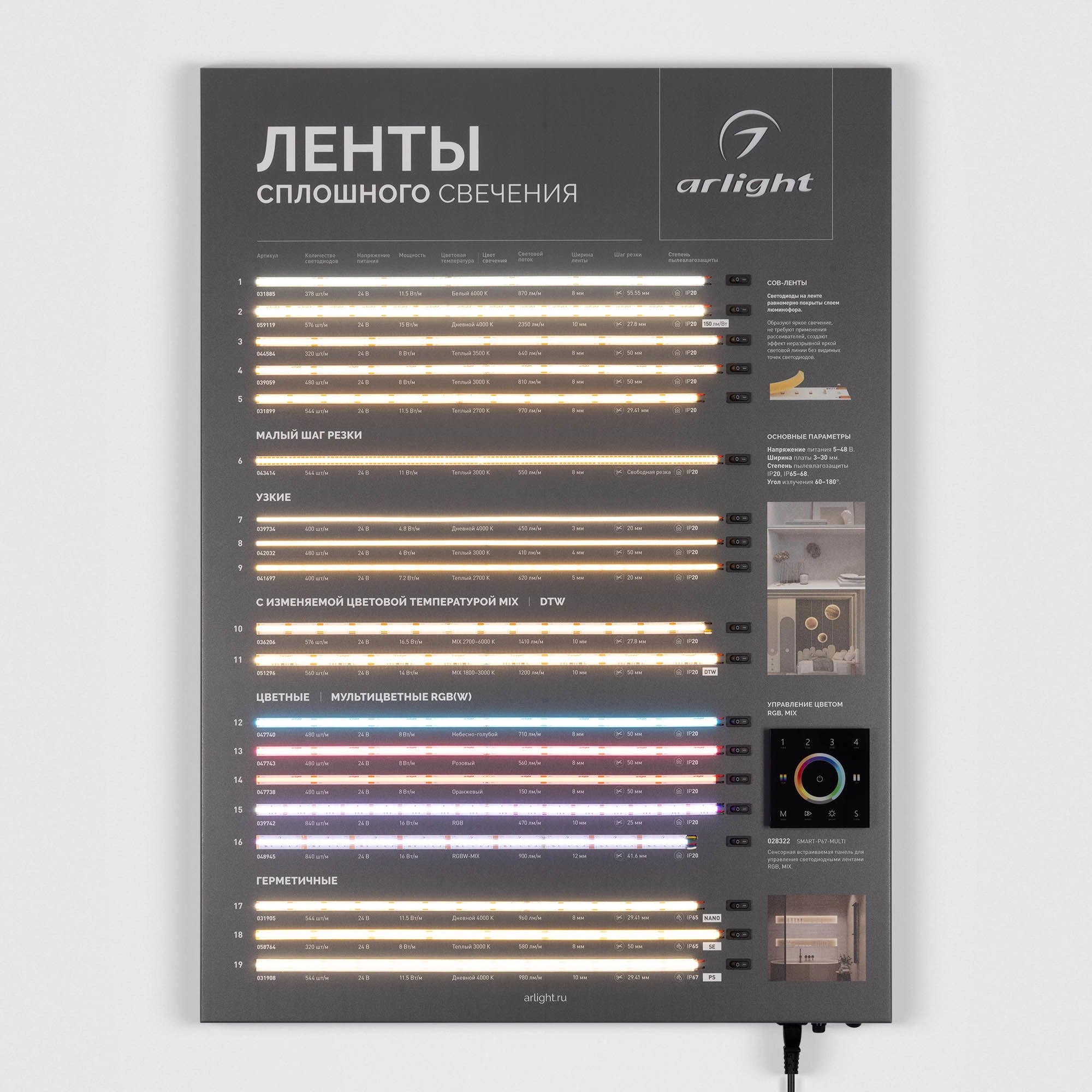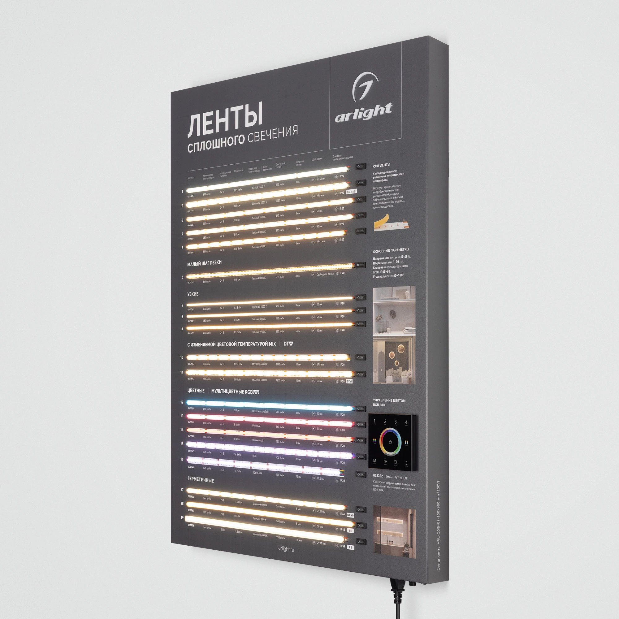 Характеристики - Стенд Ленты ARL-COB-01-830х600mm (230V) (Arlight, -)