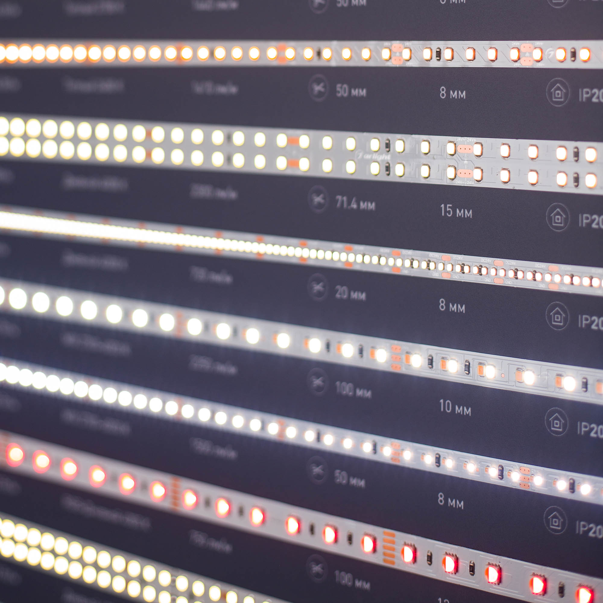 Обзорный стенд по ассортименту светодиодных лент и профилей.