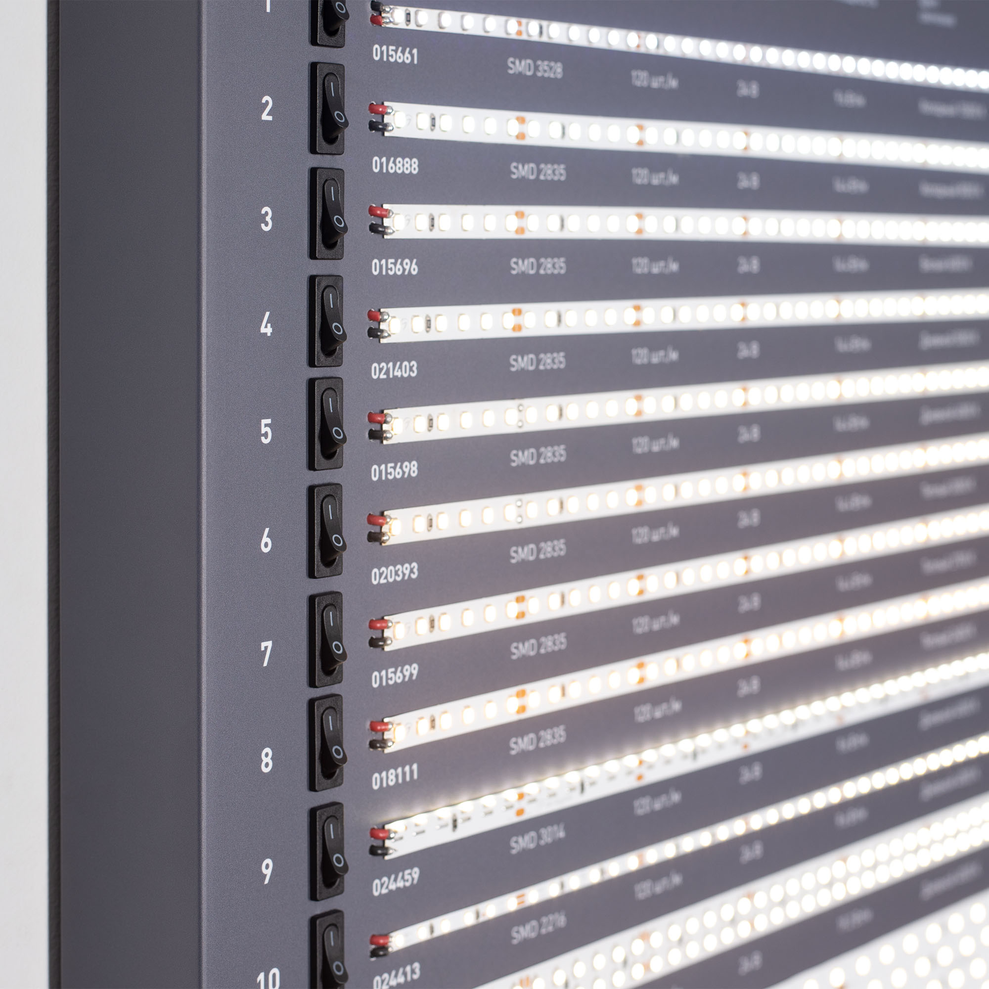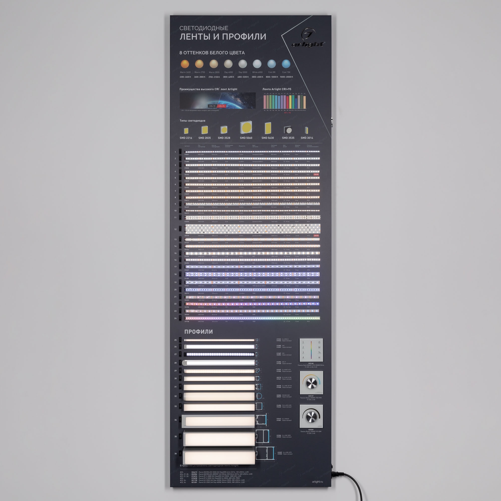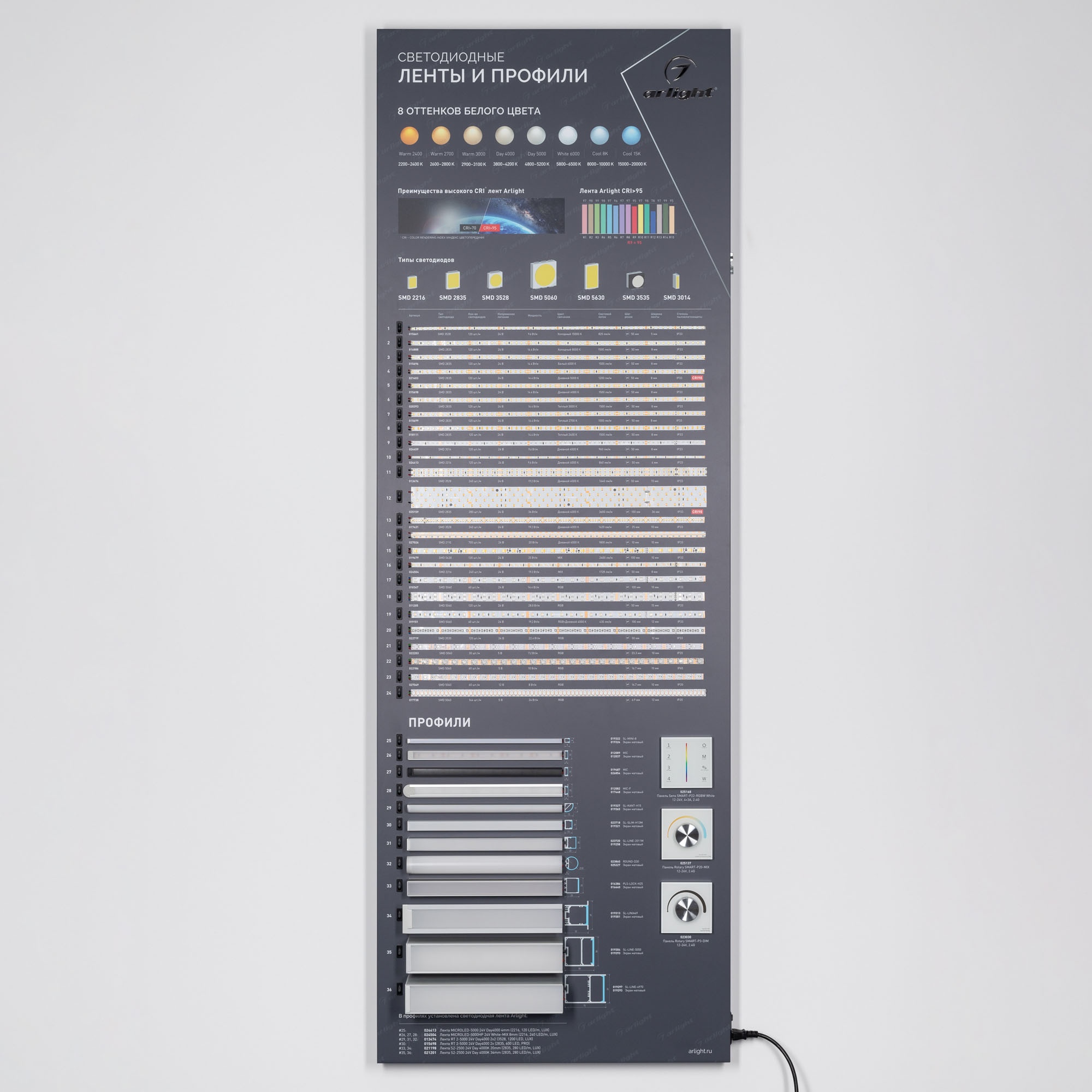Обзорный стенд по ассортименту светодиодных лент и профилей.