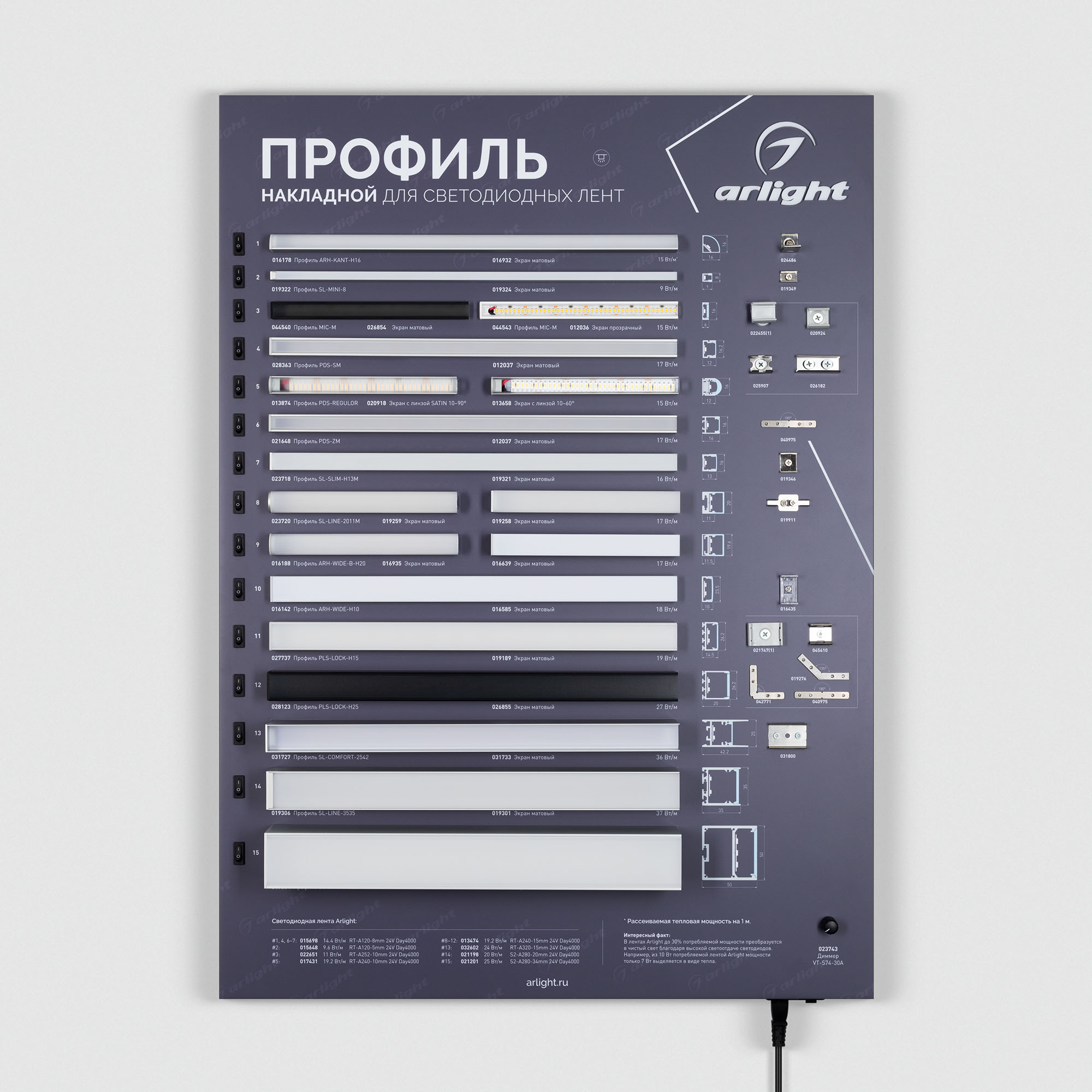Характеристики - Стенд Профиль накладной ARL-04-830x600mm (230V) (Arlight, -)