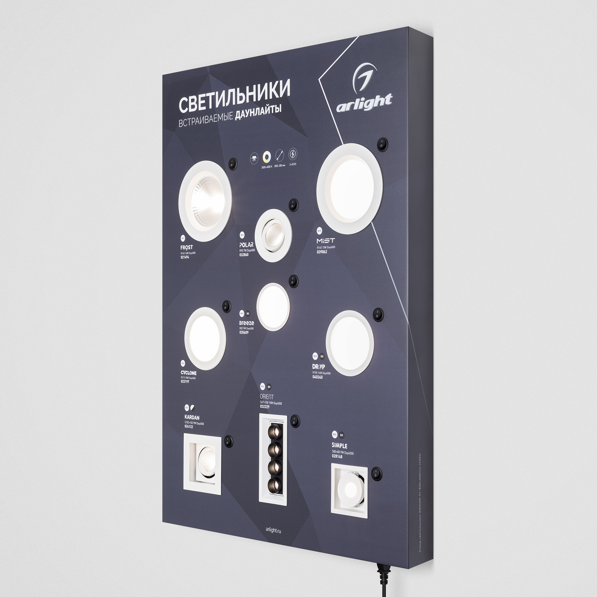 Характеристики - Стенд Светильники INDOOR-01-830х600mm (230V) (Arlight, -)