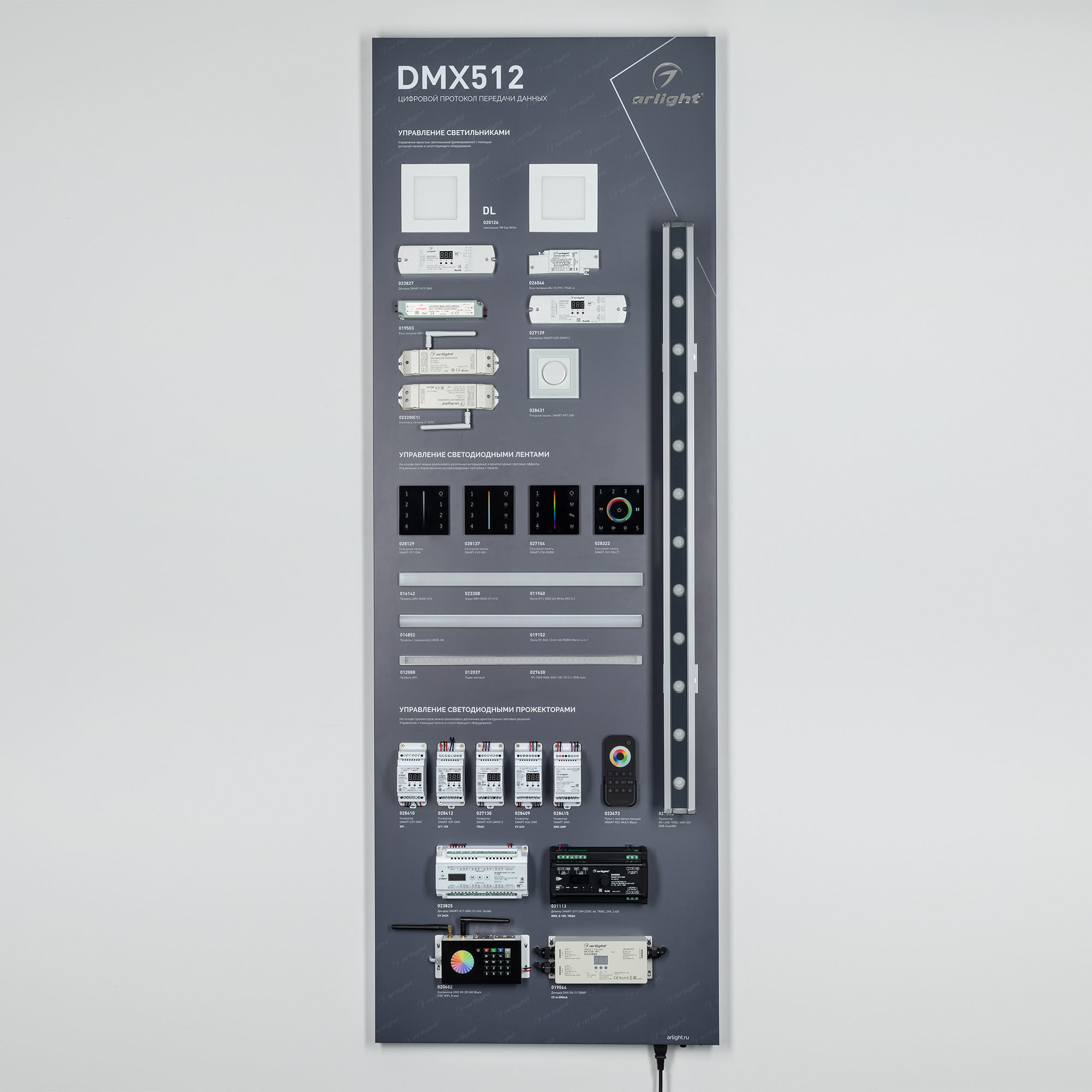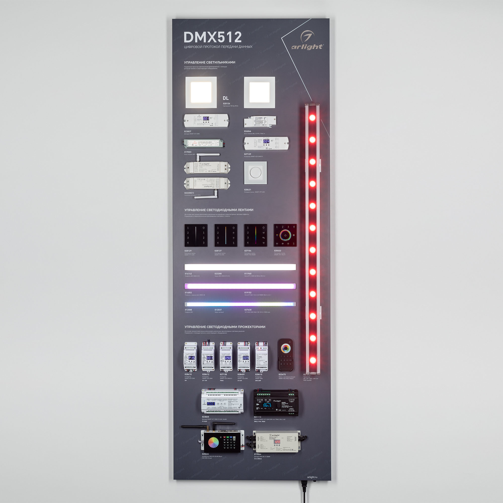 Характеристики - Стенд Управление светильниками DMX512 E34 1760x600mm (DB 3мм, пленка, лого) (Arlight, -)