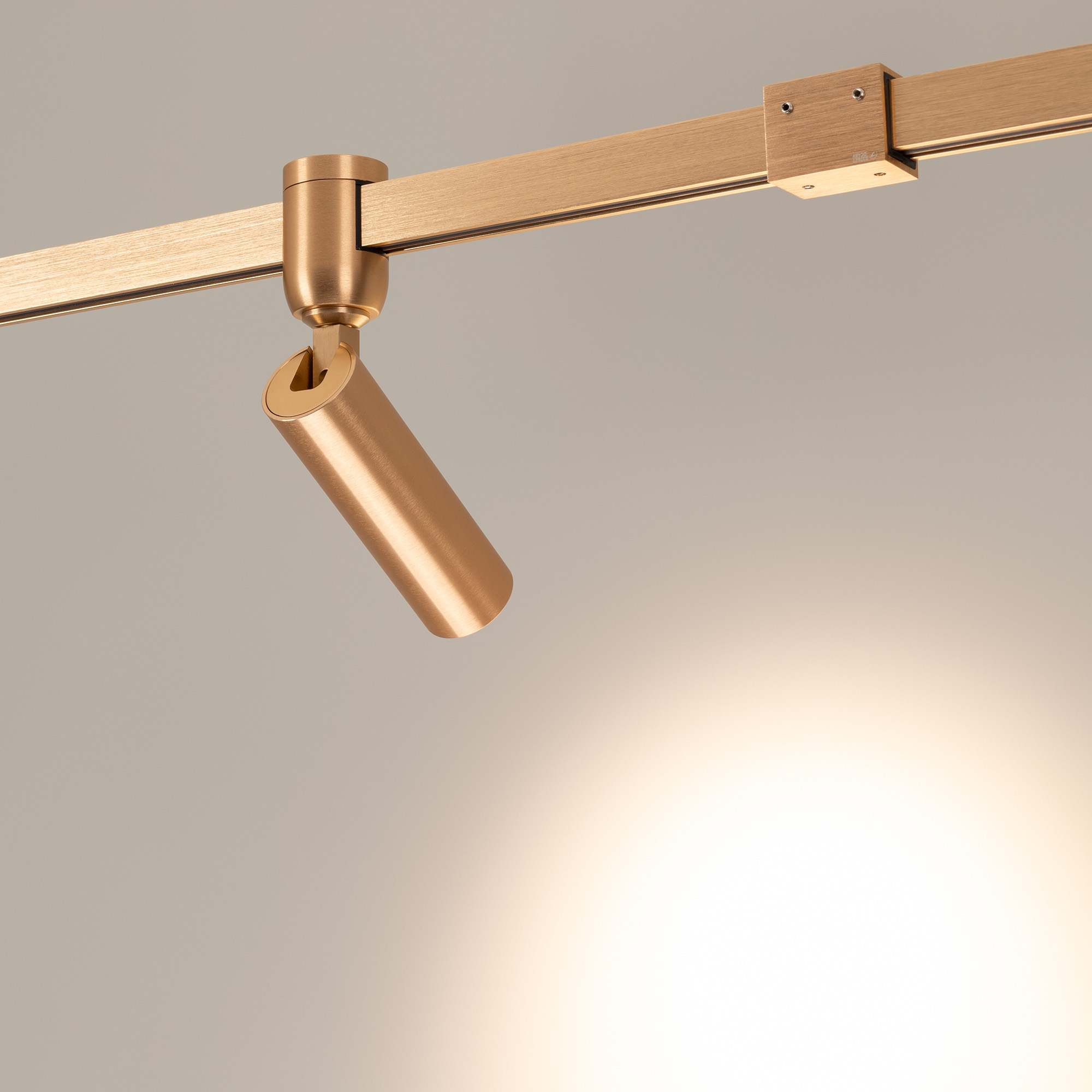 Светильник ART-APRIORI-SPOT-TURN-R38-8W Warm3000 (GD, 36 deg, 48V) мощностью 8 Вт для треков APRIORI шириной 17 мм. Теплый цвет свечения (3000 К), световой поток 580 лм, световая эффективность 73 лм/Вт и высокий индекс цветопередачи CRI>92 обеспечивают качественное, равномерное освещение и максимальную различимость цветовых оттенков. Фигурный корпус из алюминия, анодированный в цвет светлое золото, гармонично вписывается в различные типы интерьеров. Светильник легко монтируется на шинопровод с помощью специального механизма, а поворотное исполнение позволяет направить световой поток в нужное место. Возможность вертикальной установки светильника: оптикой вверх или вниз позволяет реализовать множество свето-дизайнерских задач. Узкий угол излучения 36° подойдет для организации направленного освещения. Имеет защиту от пыли IP20 для применения внутри помещений, где нет контакта с водой или другими жидкостями. Минимальный коэффициент пульсации (менее 1%) гарантирует зрительный комфорт без мерцания. Идеальное решение для создания акцентного освещения в жилых, офисных, коммерческих, и др. помещениях с высокими требованиями к качеству света. Управление яркостью осуществляется с помощью диммера по ШИМ (PWM) или возможно не адресное управление при использовании драйвера Dali, 0-10V или TRIAC. Драйвер для подключения 48В поставляется отдельно.