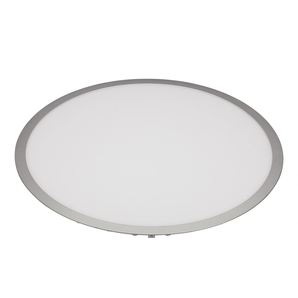 Круглая тонкая панель, серебристый корпус. Мощность 48Вт / БЕЛЫЙ ТЕПЛЫЙ 2700-3000K / 3800лм / 120°. CRI >80, smd2835. Размер Ф600 мм (врезное отверстие 580мм). Питание 100-240 VAC. В комплекте драйвер (1200mA, 36-44V), 6шт пружин для фиксации.