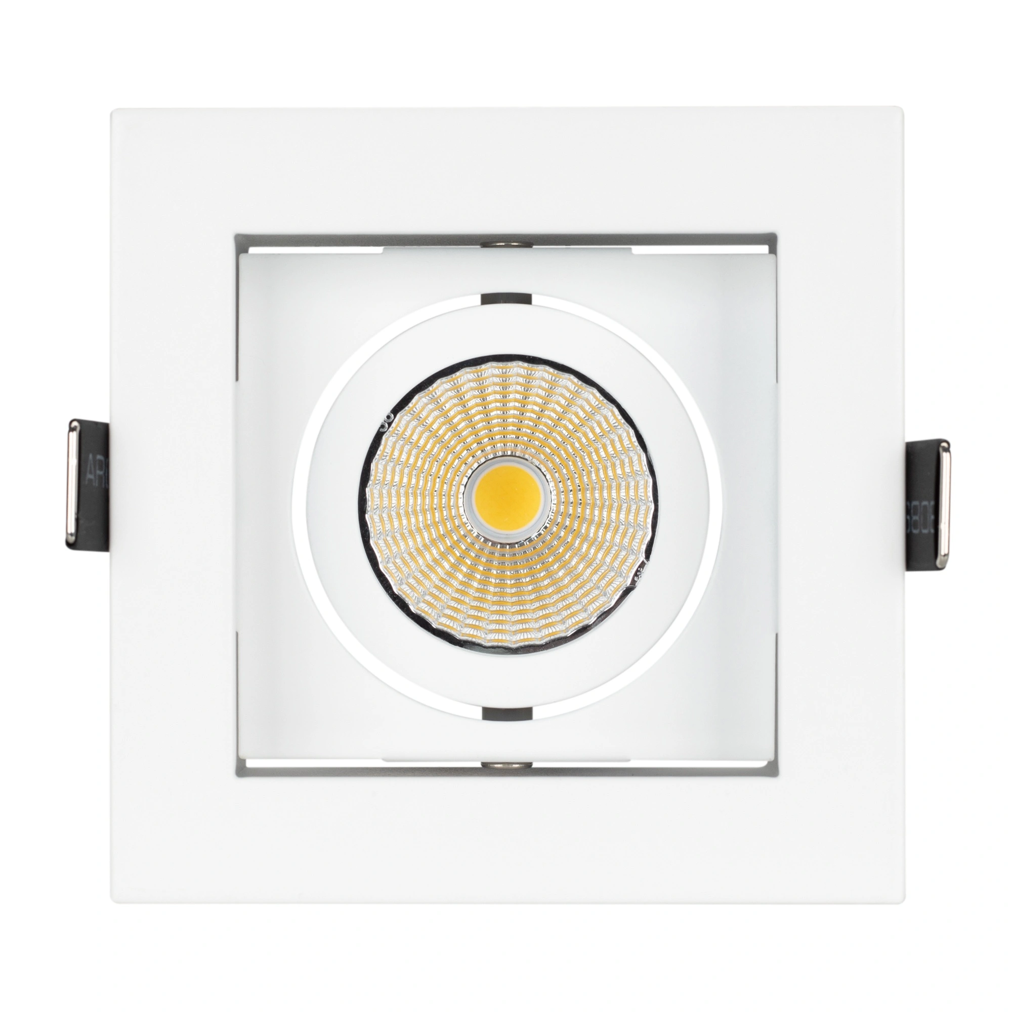 Встраиваемый карданный поворотный светильник CL-KARDAN-S102x102-9W White (WH, 38 deg) мощностью 9 Вт, с белым цветом свечения (6000 K) и высоким индексом цветопередачи CRI>80 для создания качественного освещения. Световой модуль отклоняется на 45°, что позволяет с лёгкостью менять направление светового луча. Особая конфигурация корпуса позволяет эффективно отводить тепло и продлевает срок службы светодиодов. Светильник с узким углом рассеивания 38° и световым потоком 680 лм обеспечивает качественный свет. Светильник легко устанавливается с помощью пружин в монтажное отверстие диаметром 85 мм. В комплекте поставляется драйвер, что позволяет безопасно и быстро подключать светильник напрямую к сети переменного тока 230 В. Дополнительные аксессуары приобретаются отдельно.