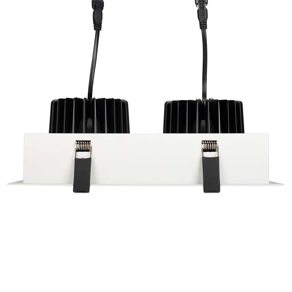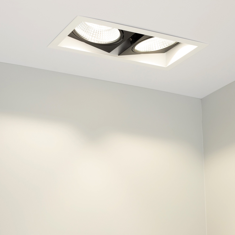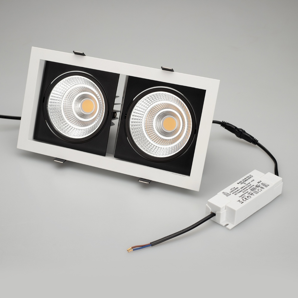 Встраиваемый карданный поворотный светильник CL-KARDAN-S283x152-2x25W Warm3000 (WH-BK, 30 deg) мощностью 50 Вт, с теплым цветом свечения (3000 K) и высоким индексом цветопередачи CRI>90 для создания качественного освещения. Световой модуль отклоняется на 45°, что позволяет с лёгкостью менять направление светового луча. Особая конфигурация корпуса позволяет эффективно отводить тепло и продлевает срок службы светодиодов. Светильник с узким углом рассеивания 38° и световым потоком 4800 лм обеспечивает качественный свет. Светильник легко устанавливается с помощью пружин в монтажное отверстие диаметром 265 мм. В комплекте поставляется драйвер, что позволяет безопасно и быстро подключать светильник напрямую к сети переменного тока 230 В. Дополнительные аксессуары приобретаются отдельно.