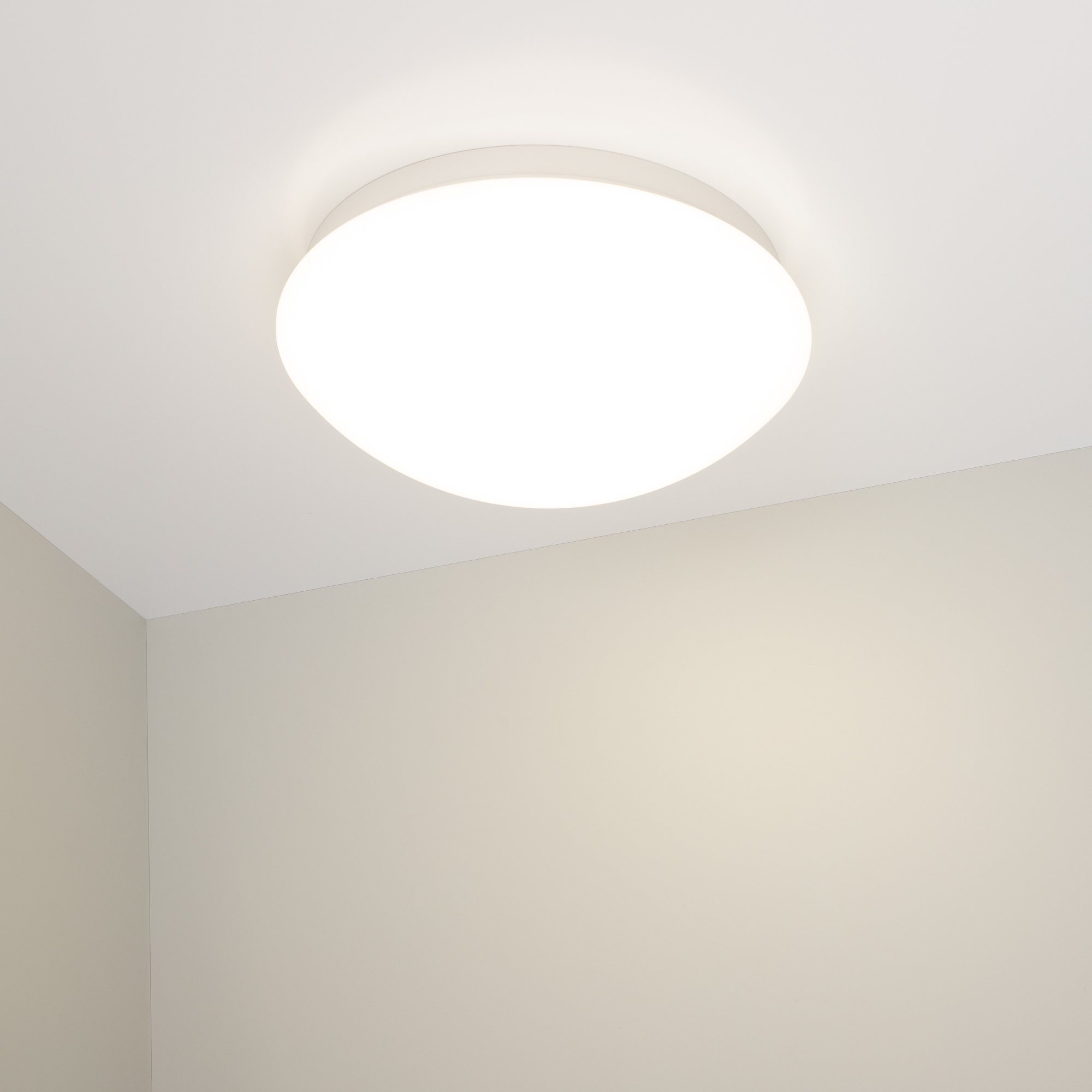 Накладной светильник CL-MUSHROOM-R180-8W Day4000 (WH, 120 deg, 230V) мощностью 8 Вт с дневным белым цветом свечения (4000 К) и световым потоком 550 лм. Предназначен для освещения мест общего пользования: вестибюлей, лестничных площадок, лифтовых холлов и прочих коммунальных и бытовых помещений. Широкий угол излучения 120°, матовый рассеиватель и низкий коэффициент пульсации для создания комфортного основного освещения. Встроенный драйвер обеспечивает подключение светильника напрямую к сети с напряжением питания 230 В.
