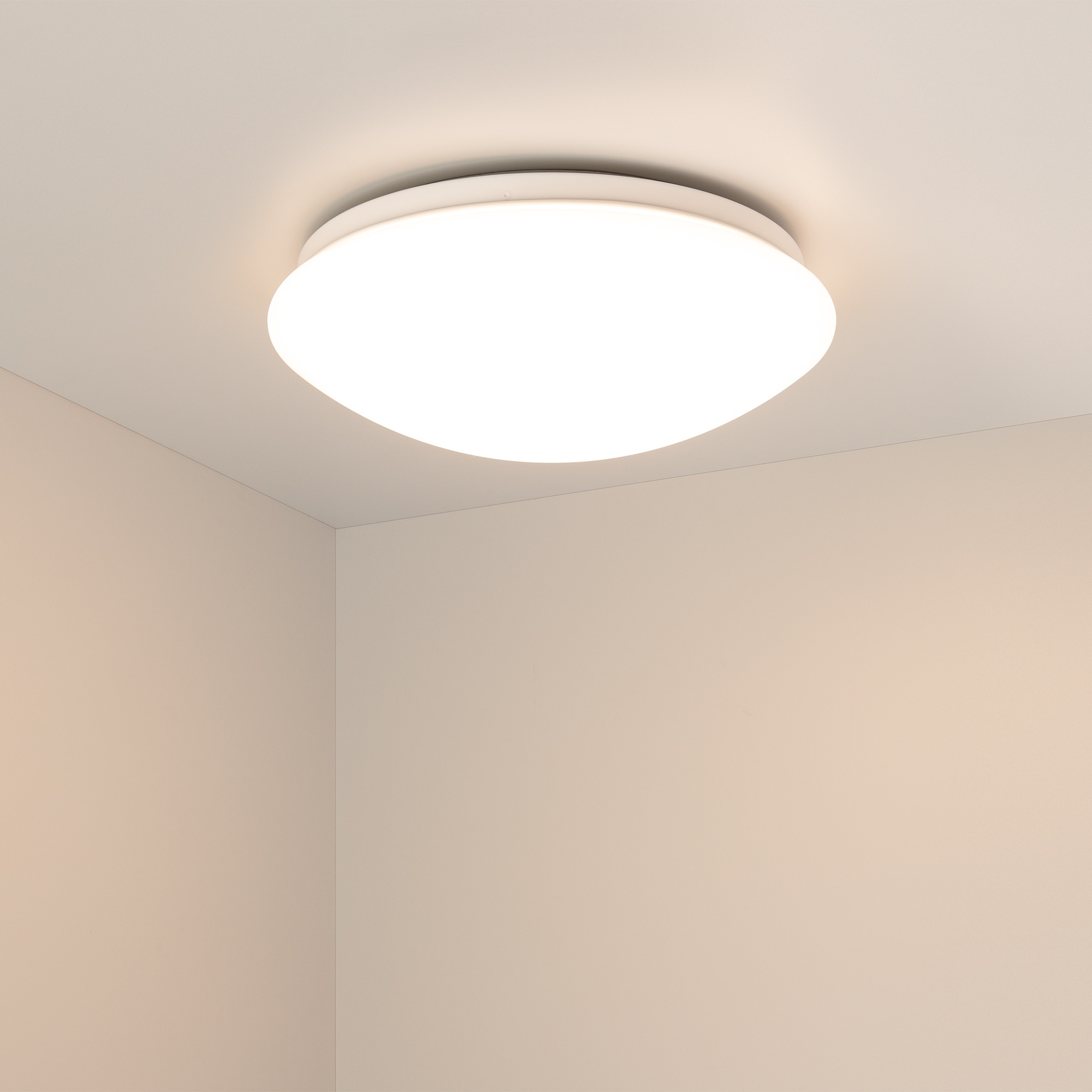 Накладной светильник CL-MUSHROOM-R280-12W Warm3000 (WH, 120 deg, 230V) мощностью 12 Вт с теплым белым цветом свечения (3000 К) и световым потоком 850 лм. Предназначен для освещения мест общего пользования: вестибюлей, лестничных площадок, лифтовых холлов и прочих коммунальных и бытовых помещений. Широкий угол излучения 120°, матовый рассеиватель и низкий коэффициент пульсации для создания комфортного основного освещения. Встроенный драйвер обеспечивает подключение светильника напрямую к сети с напряжением питания 230 В.
