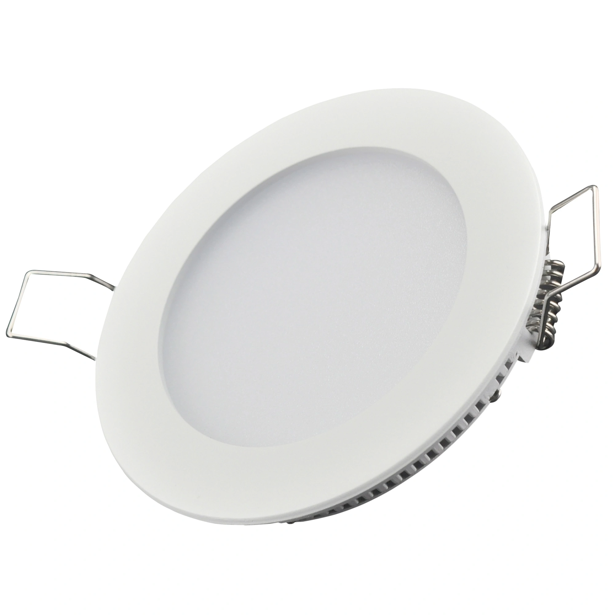 Тонкая панель 6Вт, белый круглый корпус. Цвет БЕЛЫЙ ЧИСТЫЙ 6000K, св.поток 450-500лм, CRI(Ra)>80, угол 120°. Размер Ф120x13 мм, установка в отверстие 105 мм. Питание AC 220V, 6Вт, драйвер в комлекте (300mA, 12-24V). Не диммируется.