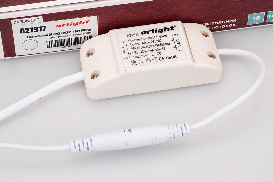 Характеристики - Светильник DL-192x192M-18W White (Arlight, IP40 Металл, 3 года)