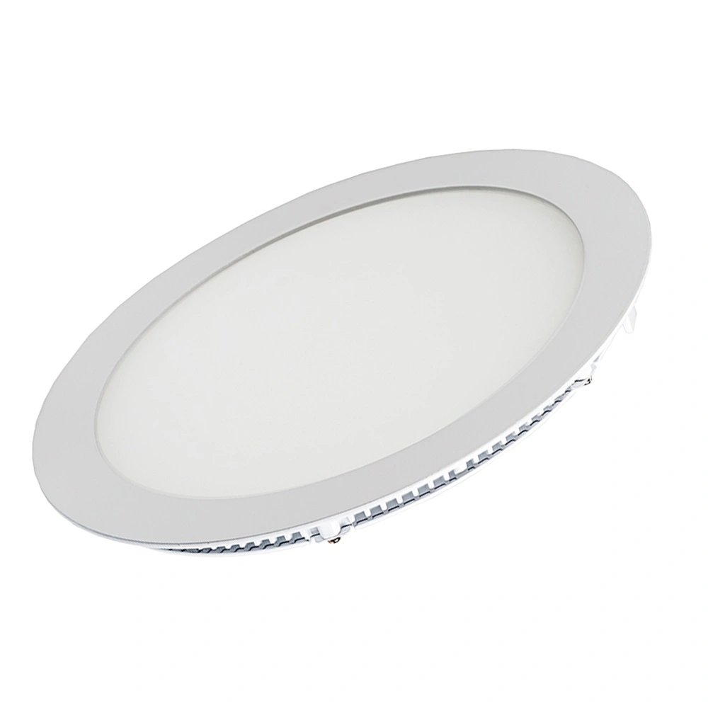 Тонкая панель 18Вт, белый круглый корпус. Цвет ДНЕВНОЙ БЕЛЫЙ 4000K, св.поток 1400лм, CRI(Ra)>80, угол 110°. Размер Ф225x13 мм, установка в отверстие 200 мм. Питание AC 100-240V, 18Вт, драйвер в комплекте (DC300mA, 40-70V).