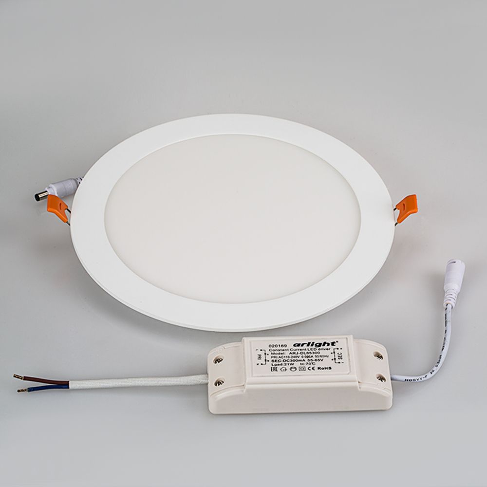 Тонкая круглая светодиодная панель DL-225M-21W Warm White мощностью 21 Вт с теплым цветом свечения (3000 К) и уровнем цветопередачи CRI>80 для создания равномерного мягкого освещения. Лаконичный алюминиевый корпус диаметром 225 мм с матовым рассеивателем будет гармонично смотреться в любом интерьере. Светильник со световым потоком 1575-1680 лм и широким углом излучения 120° обеспечивает равномерное освещение без мерцания и видимости точек светодиодов. Удобные крепления и минимальная толщина позволяют встраивать панель в натяжные и гипсокартонные потолки с помощью пружин в монтажное отверстие диаметром 210 мм. Панель поставляется в комплекте с драйвером, что дает возможность безопасно и быстро подключать светильник напрямую к сети 230 В. Дополнительные аксессуары приобретаются отдельно. Идеально подходит для основного освещения в жилых, офисных, торговых и других помещениях.
