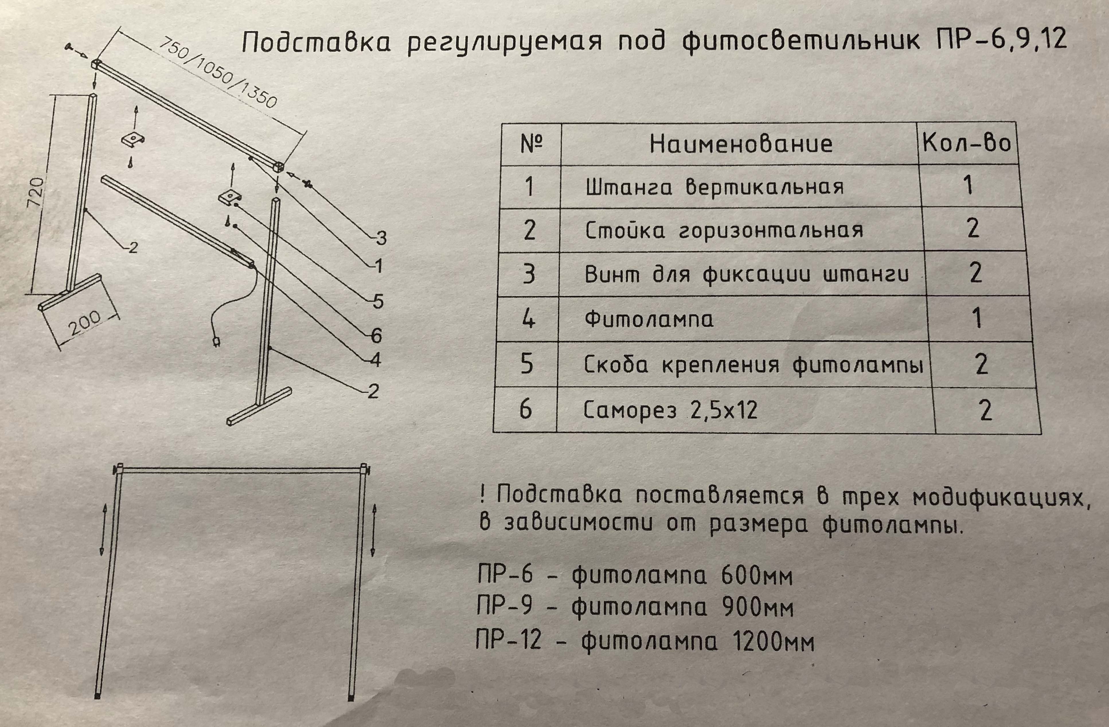 - Регулировка высоты фитосветильника.