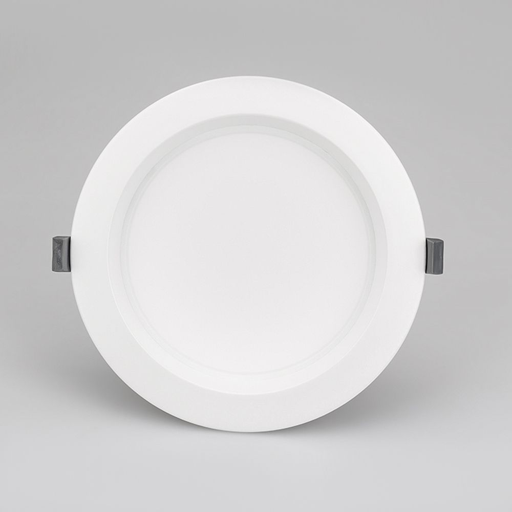 Встраиваемый круглый светильник предназначен для освещения в жилых, коммерческих и общественных помещениях. Индекс цветопередачи CRI>80 обеспечивает качественное освещение с точной передачей цветов. Алюминиевый корпус, окрашенный в белый цвет, будет гармонично смотреться в любом интерьере. Особая конфигурация корпуса позволяет эффективно отводить тепло и продлевает срок службы светодиодов. Матовый экран создает равномерное освещение без видимости точек светодиодов. Светильник с широким углом излучения 90 градусов подойдет для общего освещения помещений. Легко устанавливается в натяжные или гипсокартонные потолки с помощью пружин в монтажное отверстие. В комплекте поставляется драйвер, что позволяет безопасно и быстро подключать светильник напрямую к сети переменного тока 230 В. Корпус с защитой от пыли на уровне IP 40 применим для помещений, в которых отсутствует контакт с водой или другими жидкостями. Имеется возможность диммирования при замене штатного драйвера.
