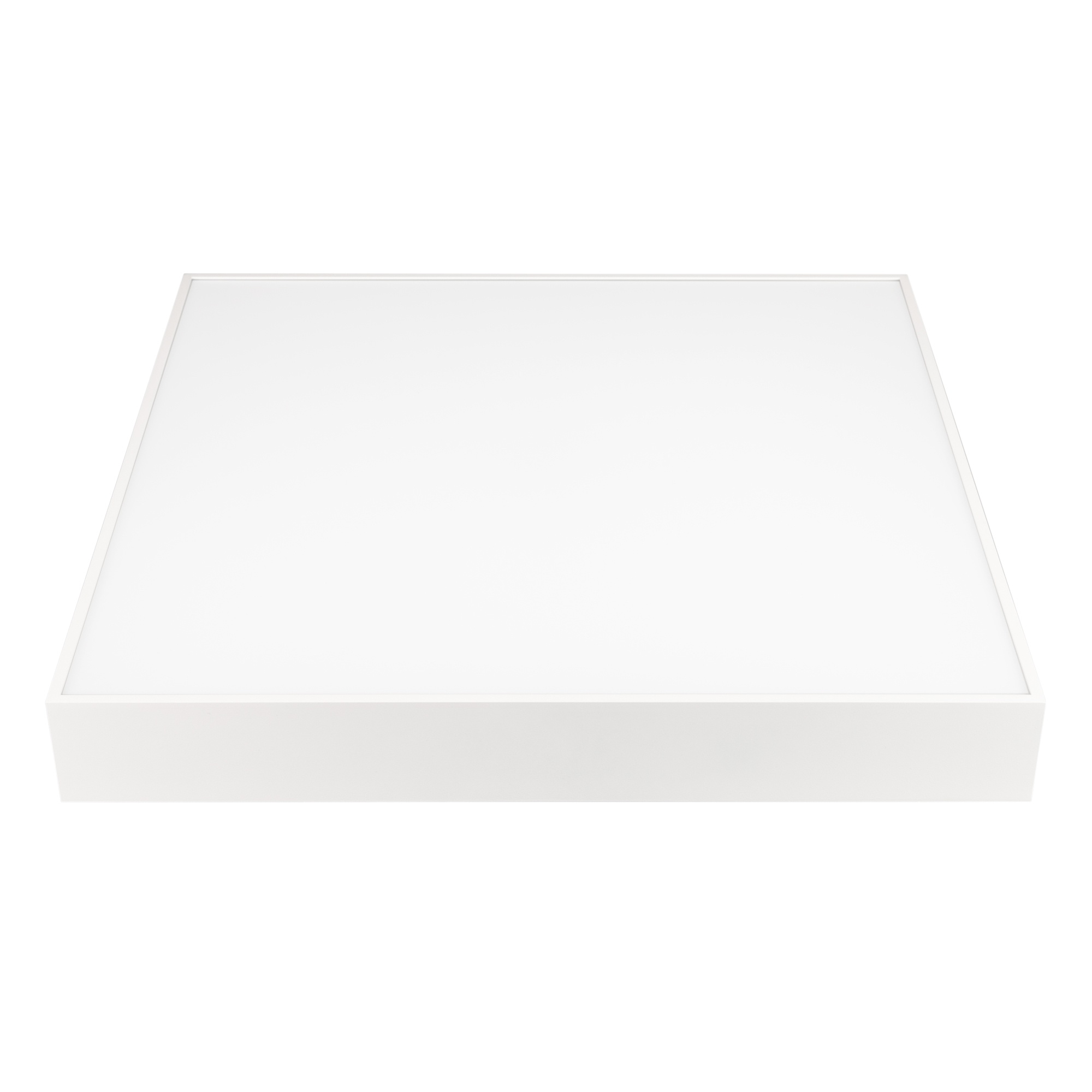 Интерьерный накладной светильник QUADRO мощностью 54 Вт с белым теплым цветом свечения (3000К), световым потоком 4100-4400 лм и высокой световой эффективностью 90 лм/Вт. Предназначен для создания яркого и качественного освещения в интерьере. Обеспечивает отличную передачу цветов, а угол освещения в 120 градусов подходит для основного освещения. Матовый экран из поликарбоната гарантирует равномерное освещение без видимости точек светодиодов. Корпус квадратный, выполненный из белого окрашенного алюминия, имеет степень защиты от пыли IP40, легко монтируется. Светильник предназначен для установки внутри помещений, без контакта с водой. Встроенный блок аварийного питания поддерживает работу в автономном режиме до 3 часов. Пульсация менее 5 процентов предотвращает мерцание, обеспечивая комфортное освещение.