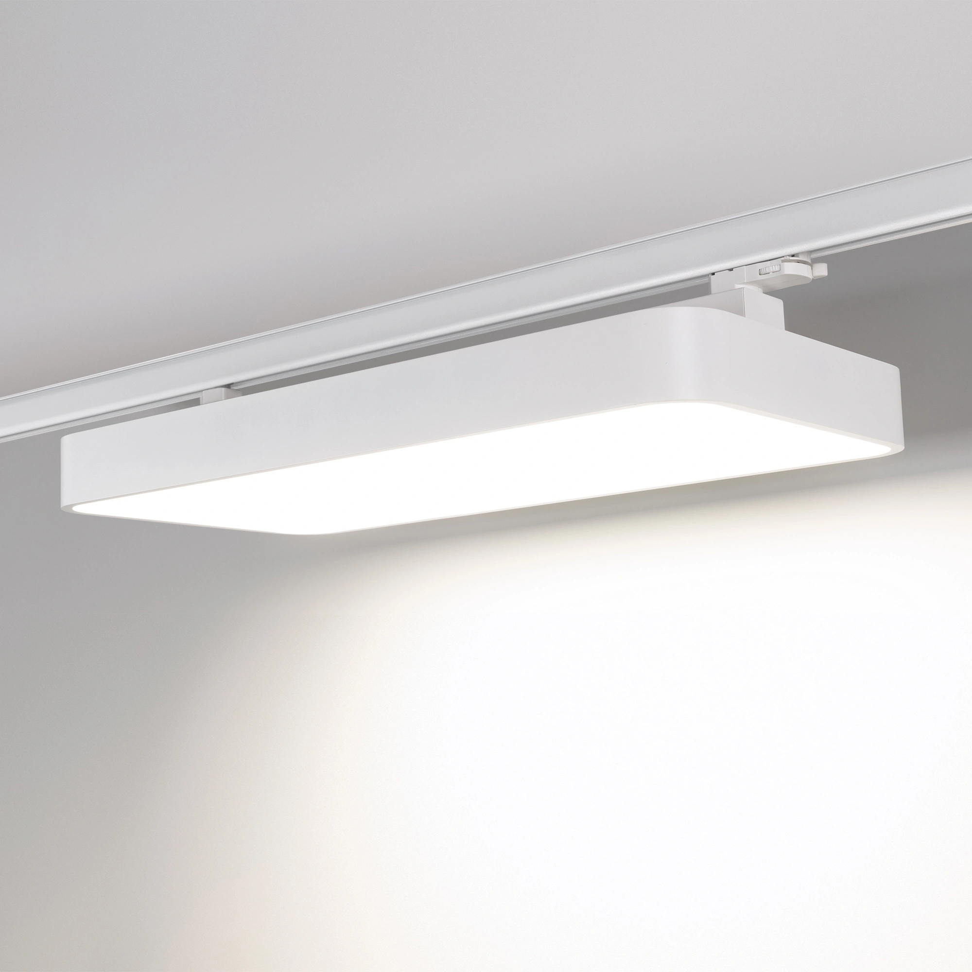 Подвесной трековый светильник LGD-AFINA-4TR-S600x300-50W White6000 (WH, 110 deg, 230V) мощностью 50 Вт с белым цветом свечения (6000 К), с широким углом излучения 110°, световым потоком 4200 лм и высоким индексом цветопередачи CRI>90 обеспечивает качественное освещение и высокую световую отдачу, что удовлетворяет требованиям многих проектов. Прямоугольный корпус 600*300*50 мм из алюминия окрашен в белый цвет высококачественной порошковой краской и гармонично вписывается в различные типы интерьеров. Матовый экран светильника выполнен из поликарбоната, и прекрасно рассеивает свет без видимости точек от светодиодов. Корпус светильника может легко перемещаться вдоль шинопровода, что позволяет мгновенно менять конфигурацию освещения в помещении. Светильник устанавливается на 3-фазный трек серии LGD. Имеет защиту от пыли IP20 для применения внутри помещений, где нет контакта с водой или другими жидкостями. Минимальный коэффициент пульсации (менее 1%) гарантирует зрительный комфорт без мерцания. Процесс подключения светильника к сети переменного тока 230 В быстрый и безопасный, с помощью встроенного драйвера легко совмещается с треком. Идеальное решение для создания общего освещения в офисах, торговых центрах, в коммерческих зданиях и других помещениях с высокими требованиями к качеству света.